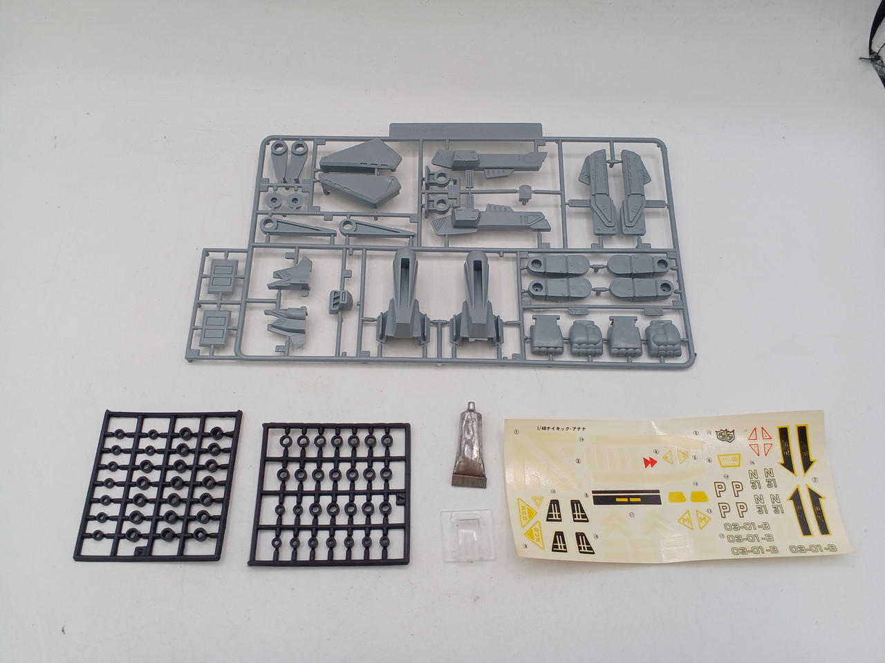 未組立品ですが、内袋が開封されています。一部のパーツがランナーから外れています。 |