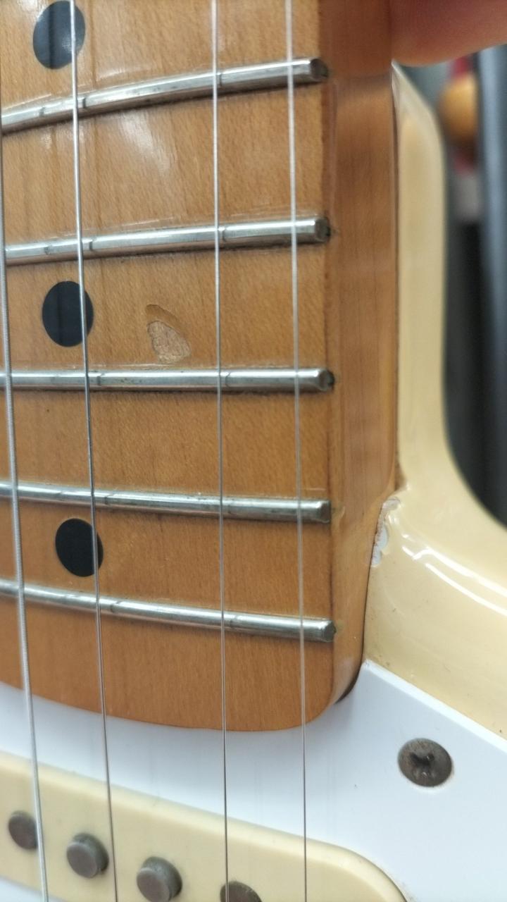 指板にフィニッシュの剥がれあり。他は年式を考慮してもきれいな状態だと思われます。 |