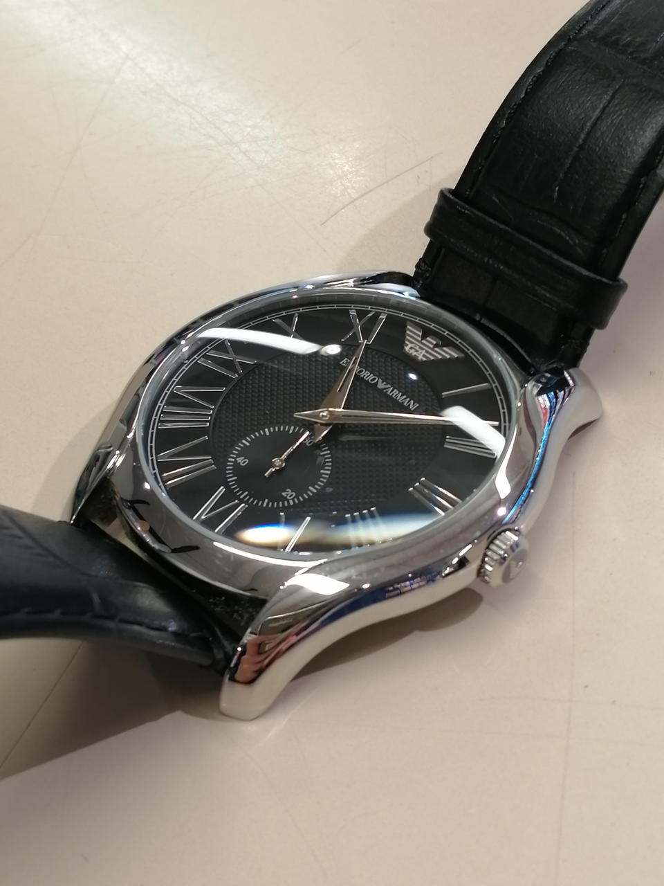 クォーツ、5気圧防水、スモールセコンド、カラー:ブラック(文字盤)、ブラック(ベルト) |