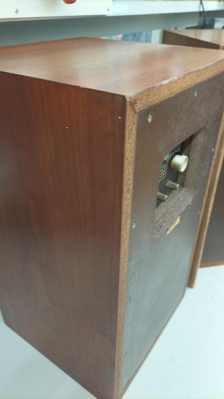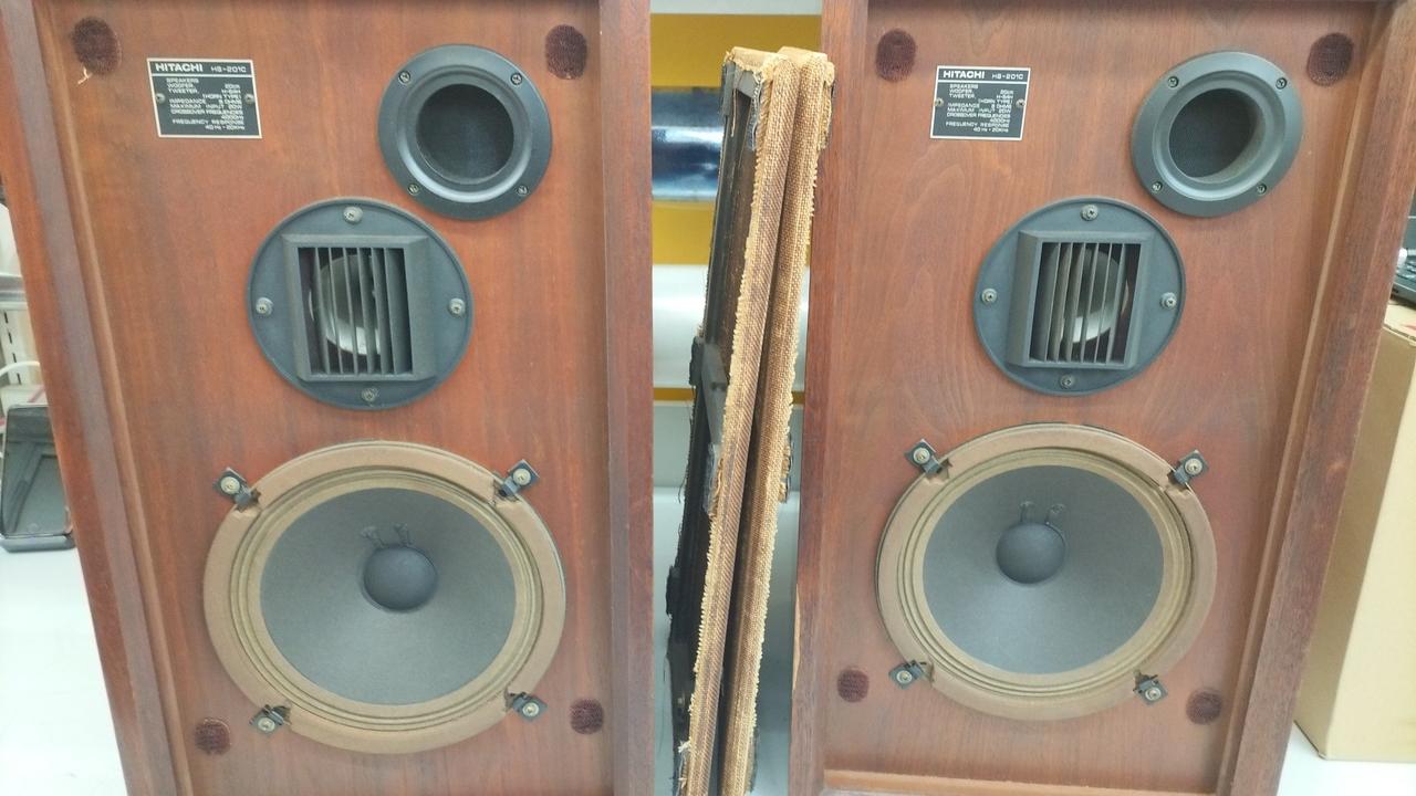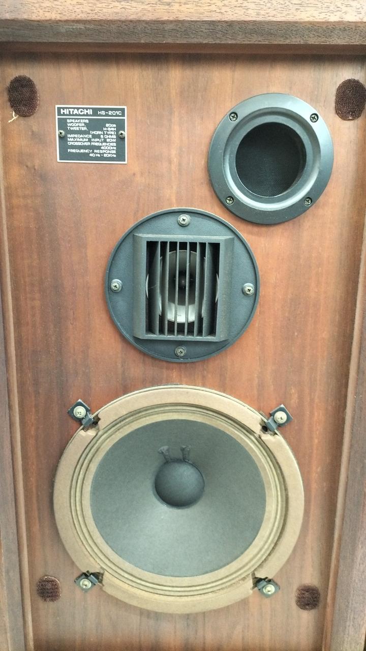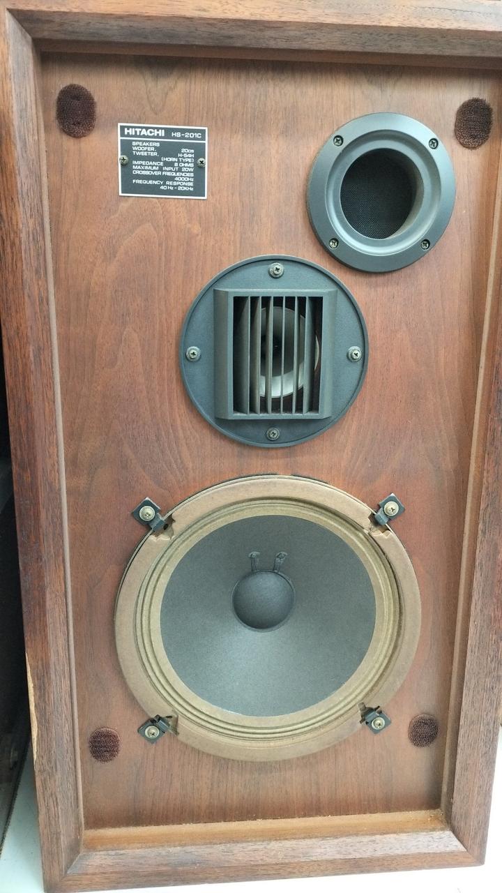 HS-201Fと同様にHS-500の音響思想を継承したスピーカーシステム。低域にはハイコンプライアンスタイプの20cmコーン型ウーファーを搭載しています。高域にはホーン型トゥイーターH-54Hを搭載しており、前面に日立独自のアコースティックレンズをセットすることで高域の指向性を向上させています。エンクロージャーはダンプド・バスレフ方式を採用しており、外観は突き板仕上げが施されています。 |