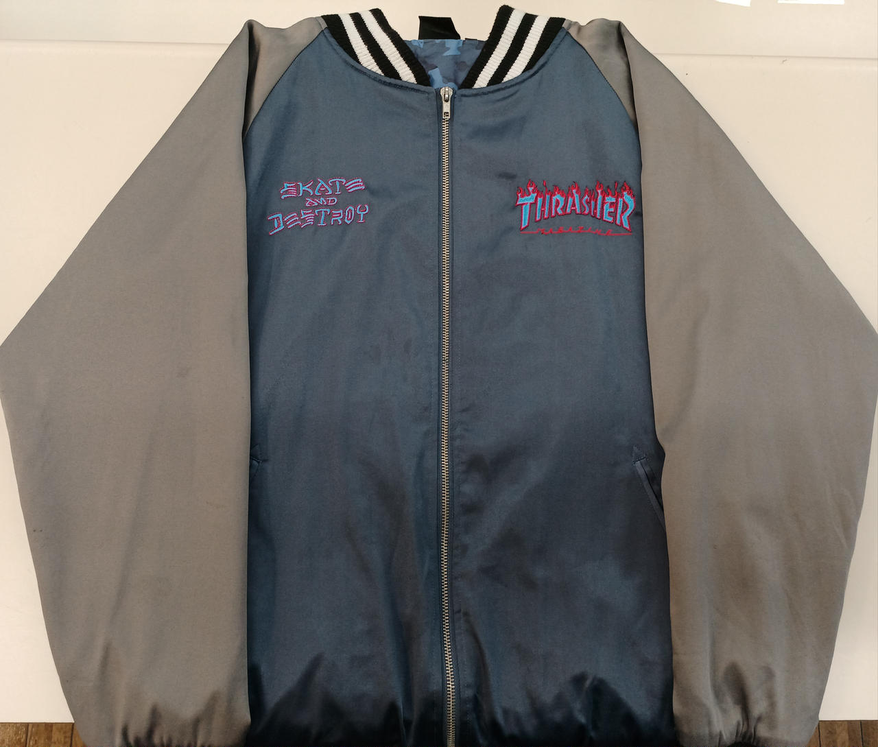 チャック付近、袖に汚れあり |