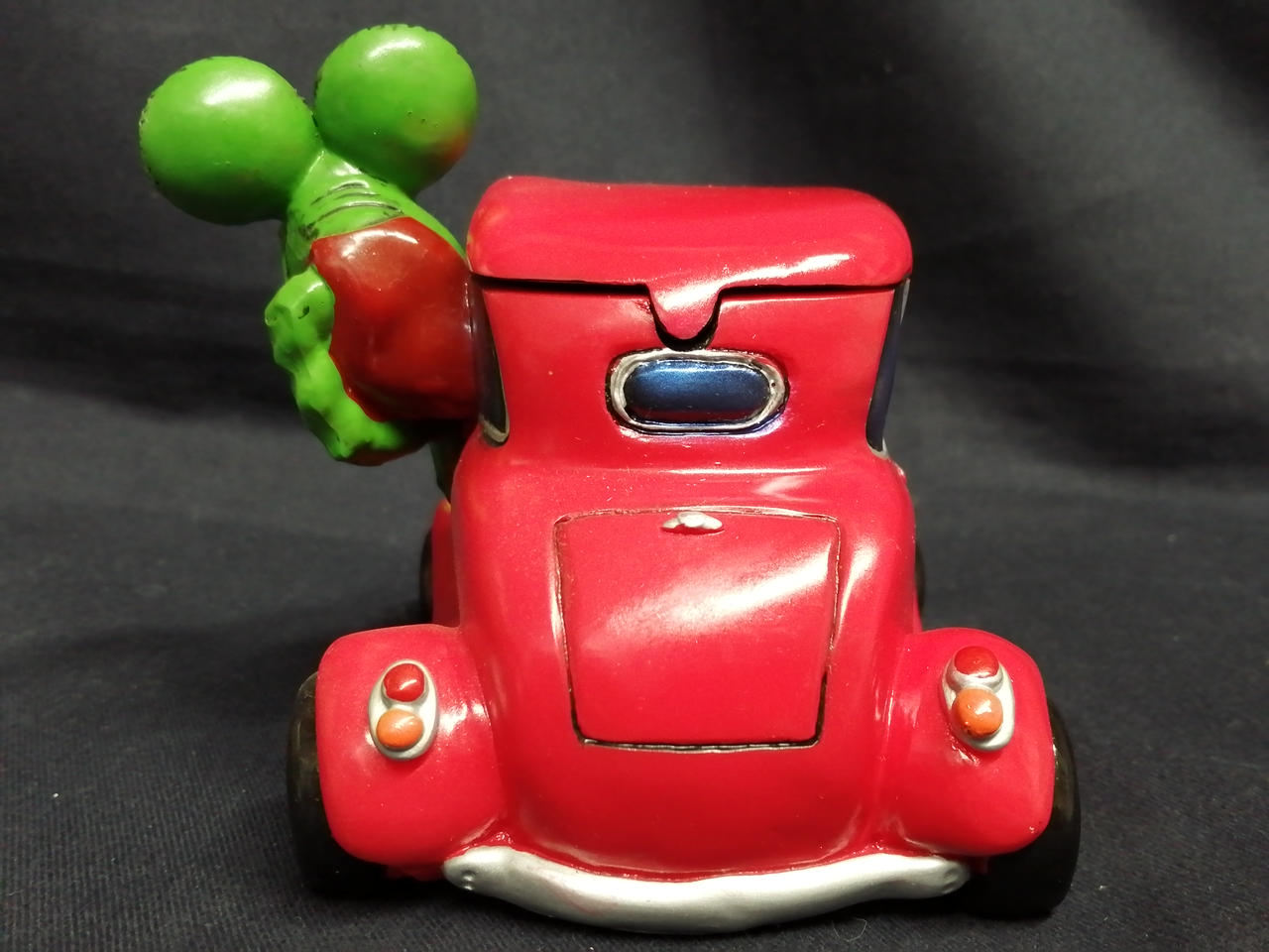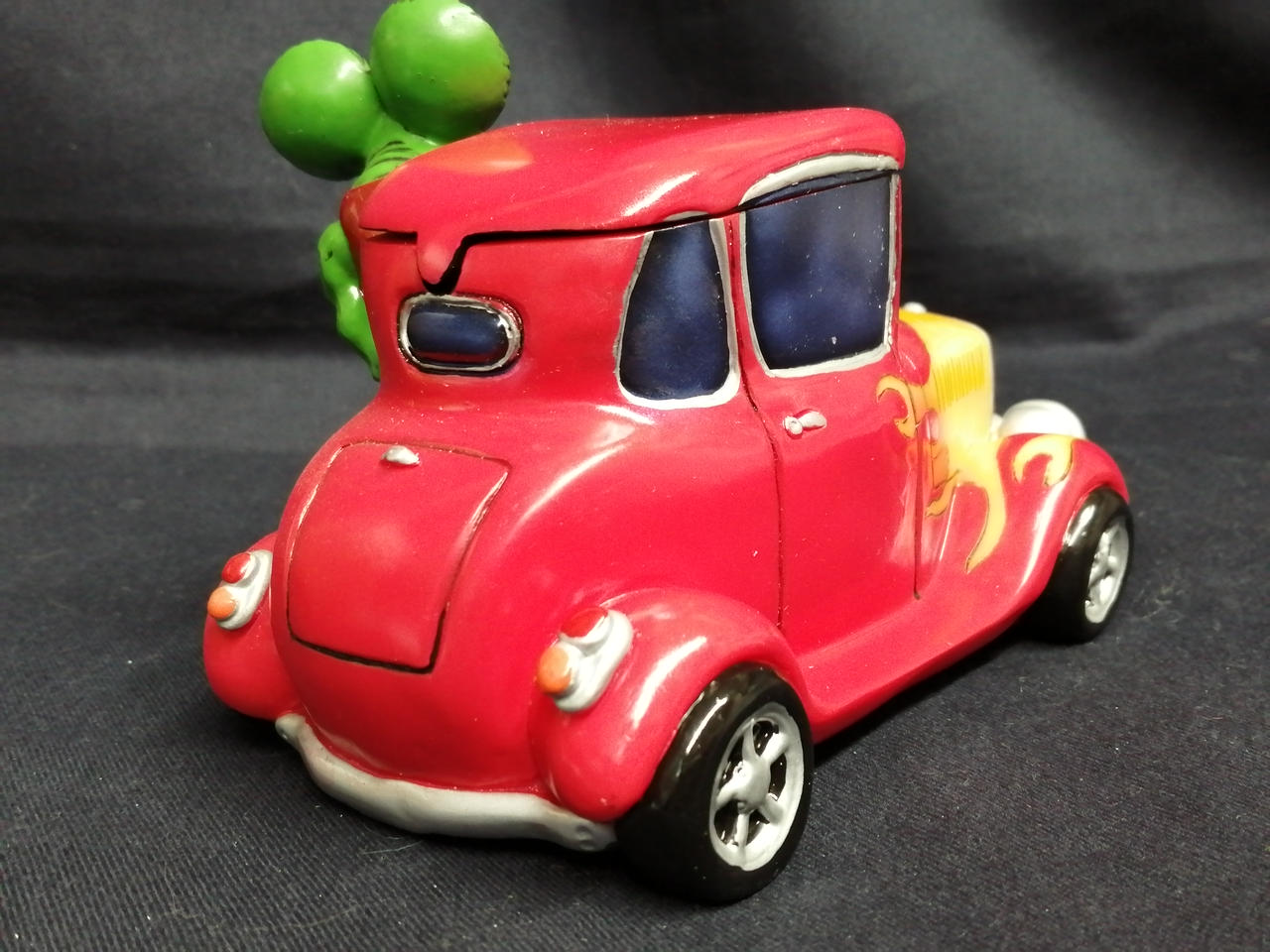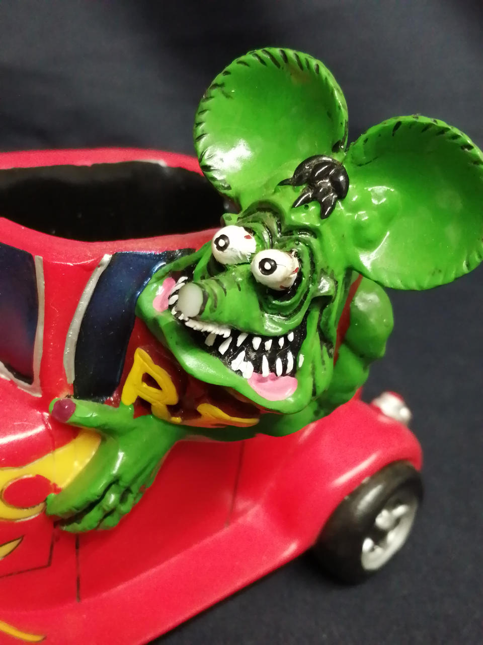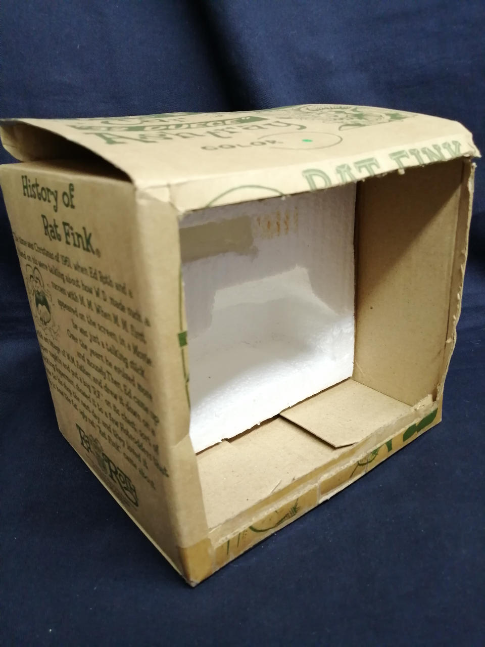 鼻先が破損しています。箱の正面は切り取られ、梱包材の発泡スチロールも半分欠品しています。 |