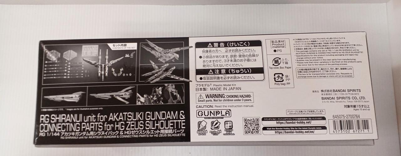 型番:RG シラヌイパック&HGゼウスシルエット用接続パーツ
