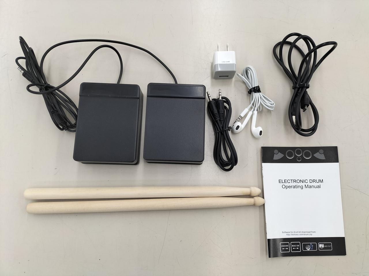 化粧箱、取扱説明書、電源アダプター、ペダル、スティック、別売イヤホン |