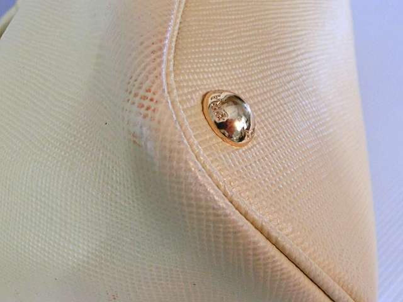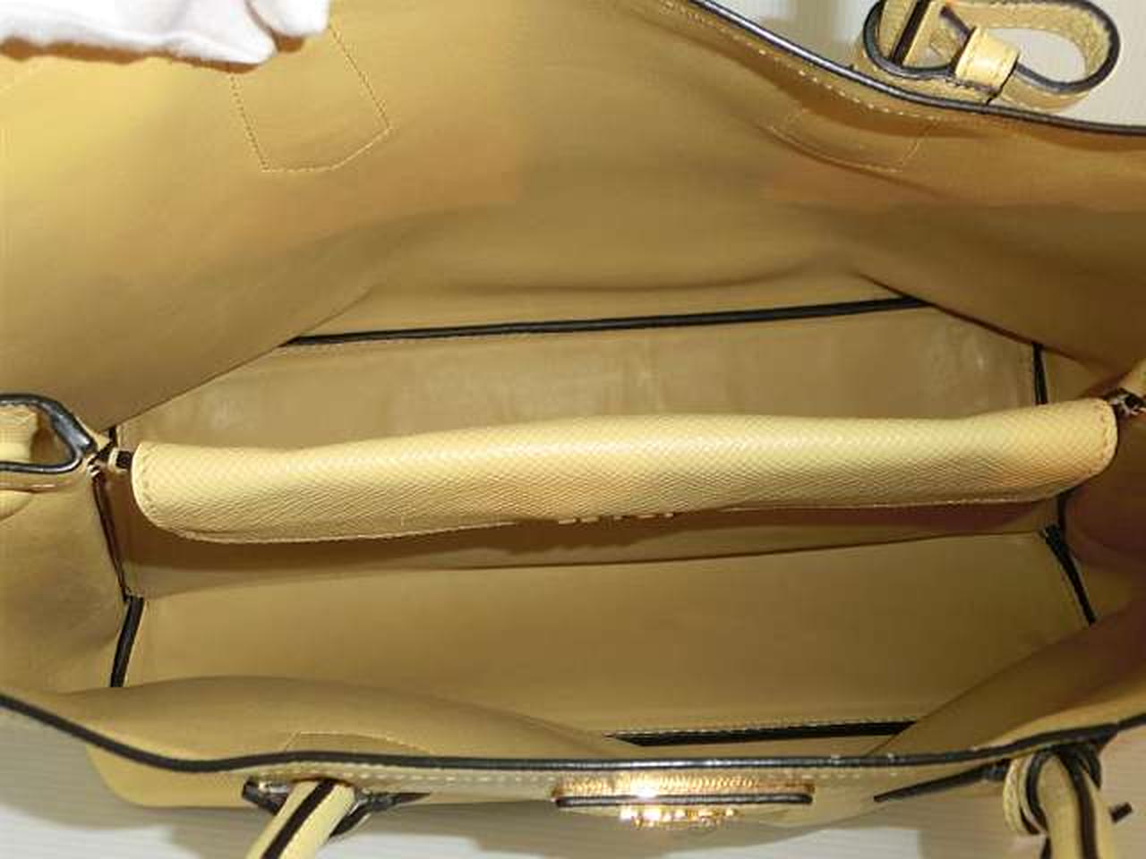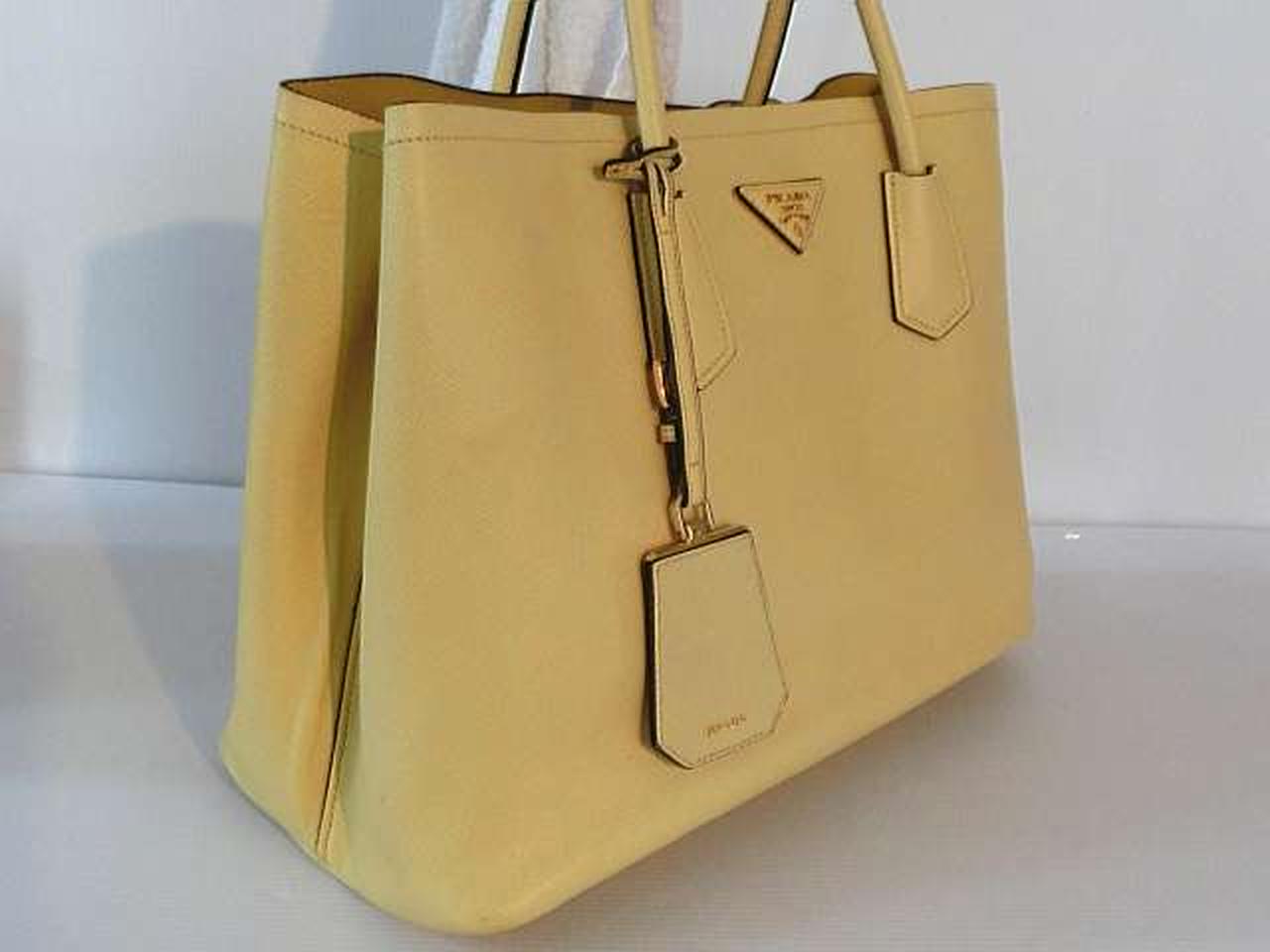 レザー素材にロゴ金具のアクセントが効いたプラダらしい高級感のあるトートバッグ。収納力があり、高級感もある大変機能的なアイテムでございます。 |