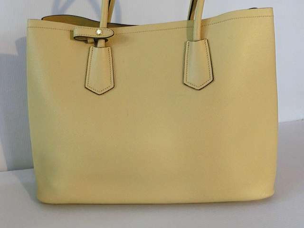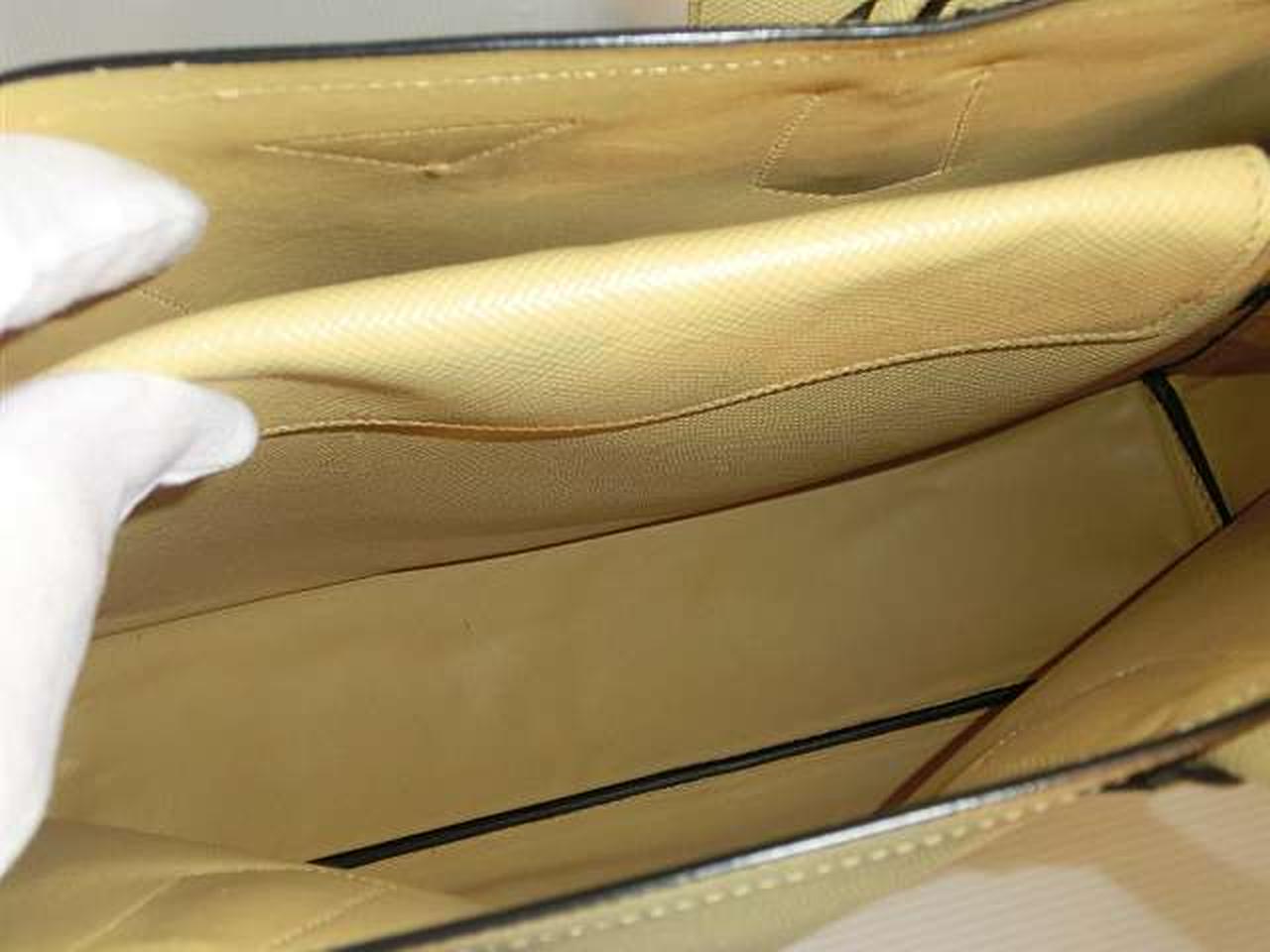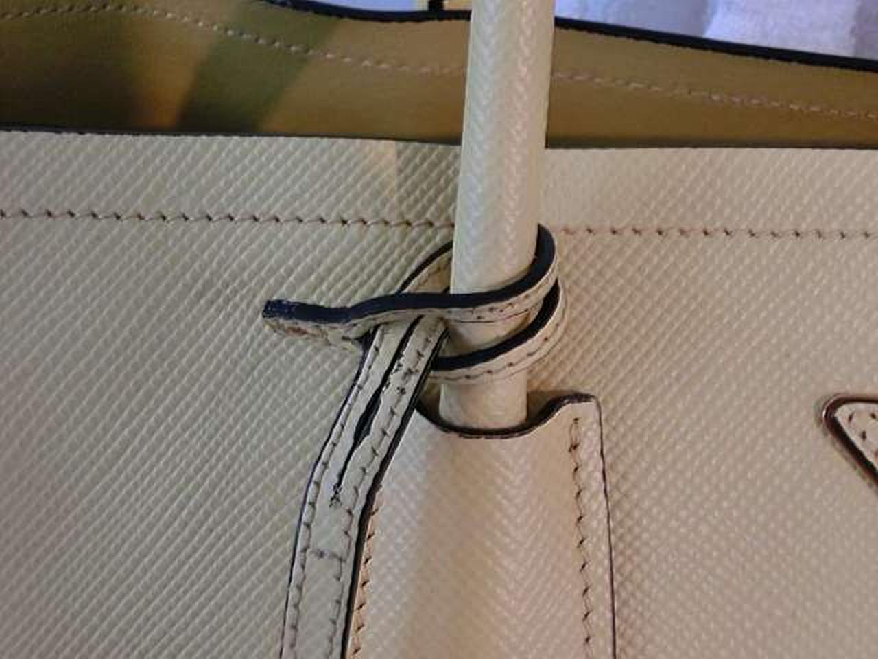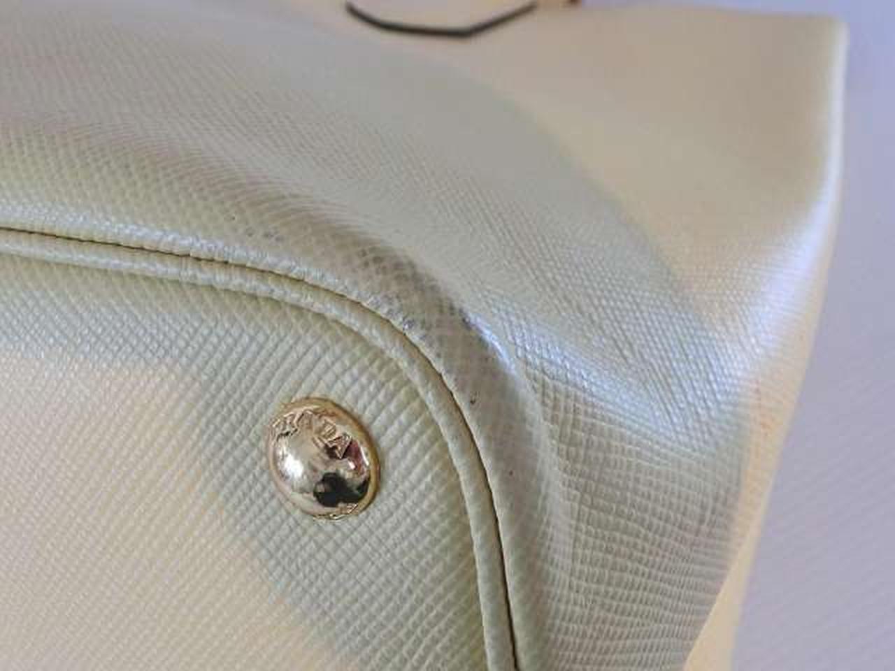 レザー素材にロゴ金具のアクセントが効いたプラダらしい高級感のあるトートバッグ。収納力があり、高級感もある大変機能的なアイテムでございます。 |