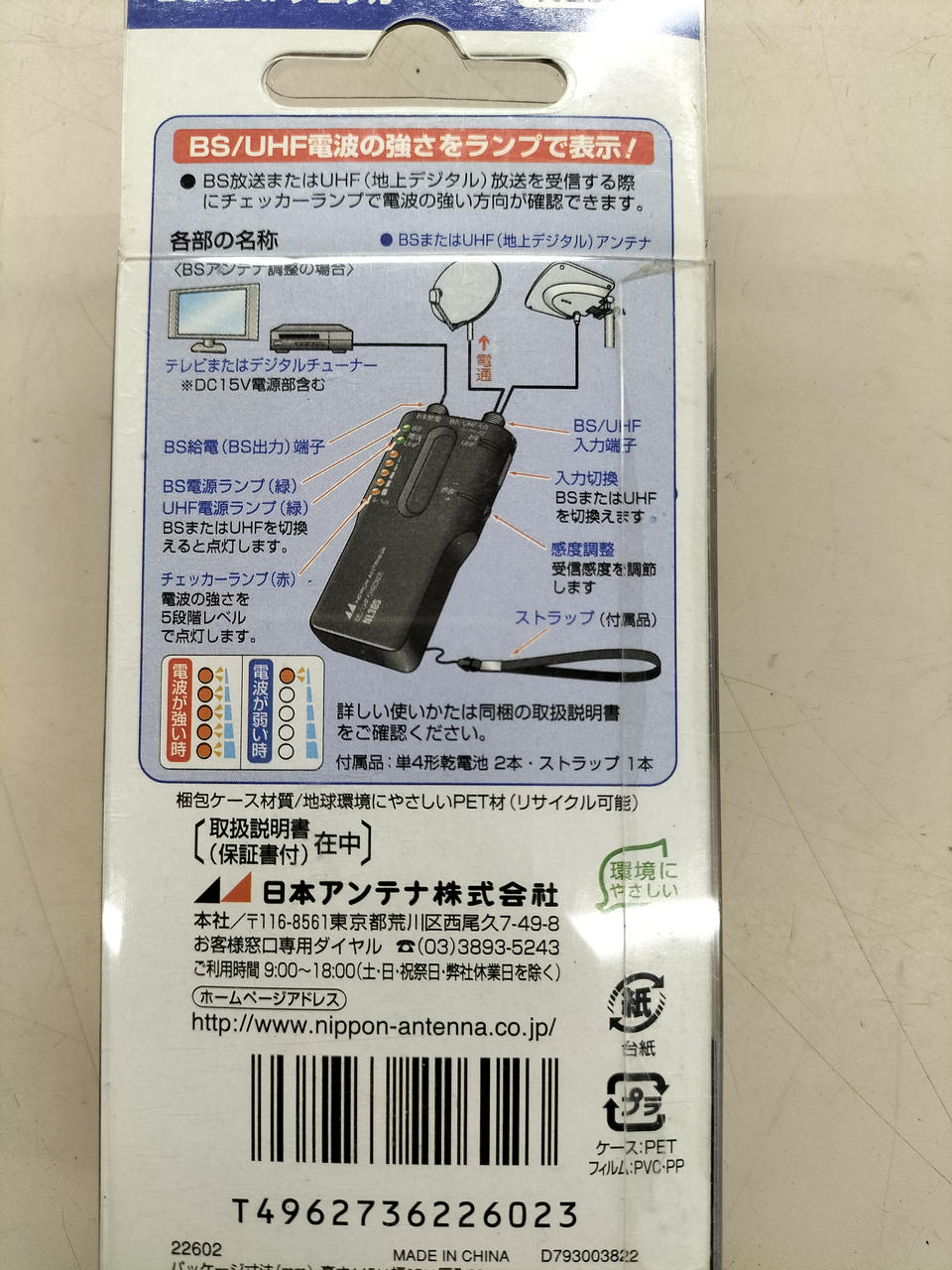 地上デジタル・BSデジタルのアンテナを設置する際に電波の強い方向を確認できます。 |