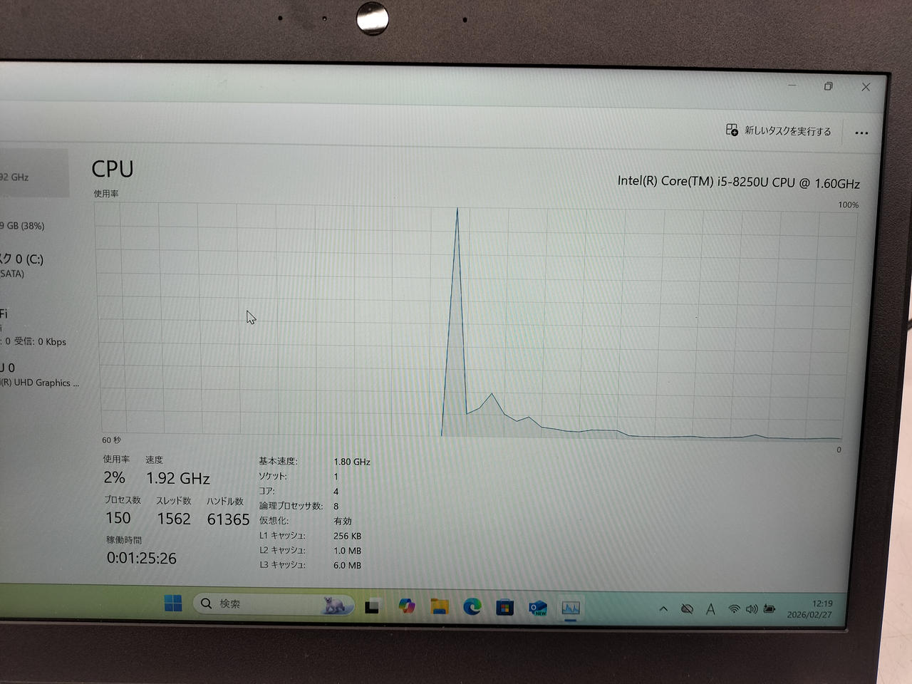 CPU:i5-8250U@1.60GHZ メモリ:8GB SSD:256GB OS:Windows11Home |