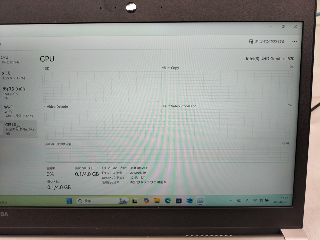 GPU:UHD Graphics620 最大バッテリー容量:99% 画面サイズ:15.6インチ |