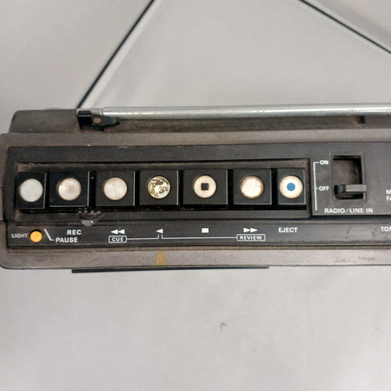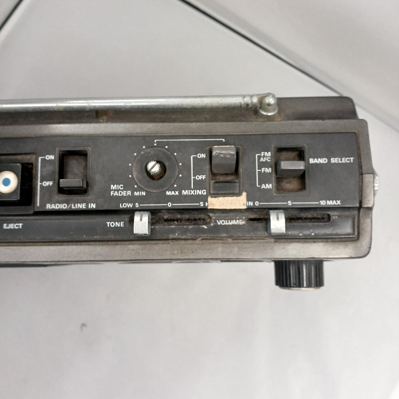 有線接続でFM受信しました。ツマミ1つ欠品。ツマミやスイッチにガリあります。