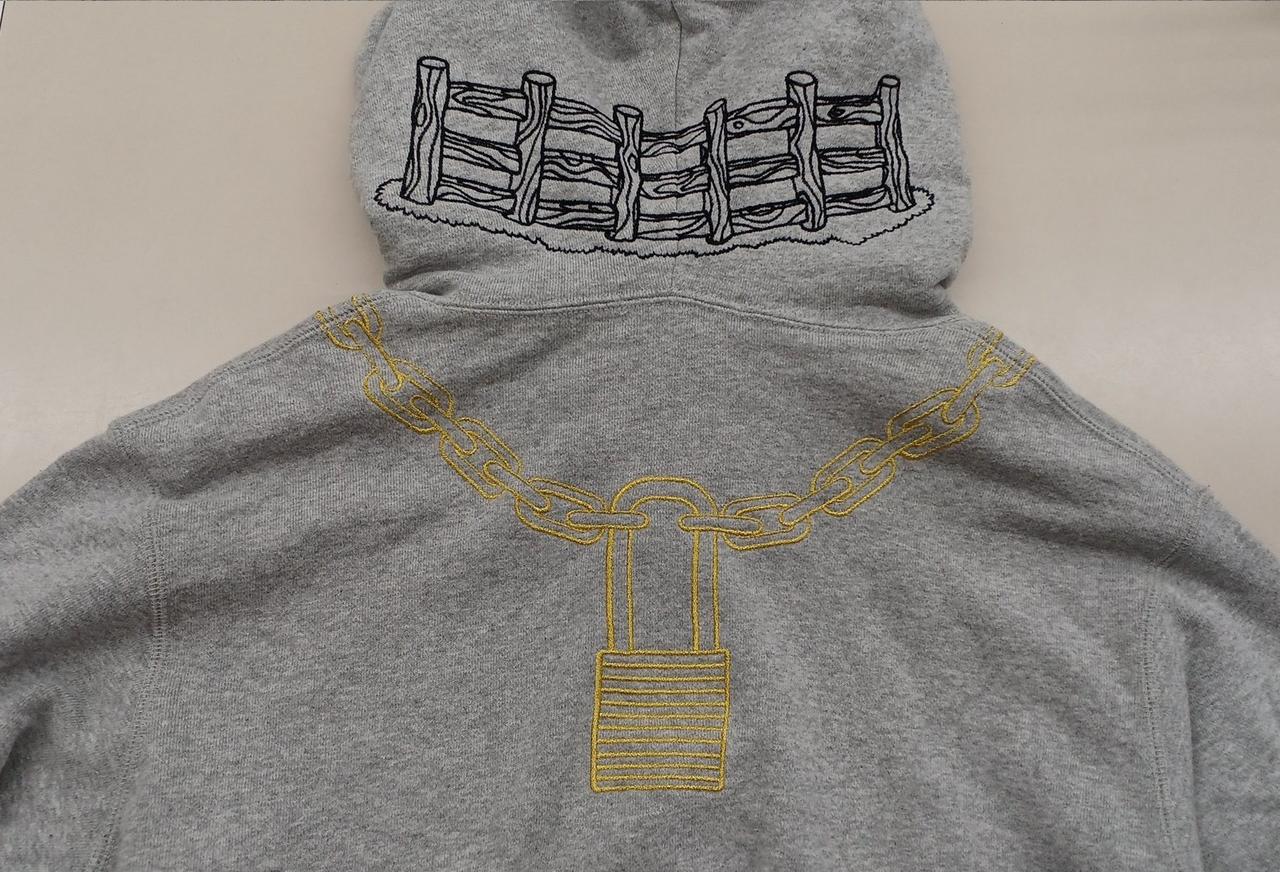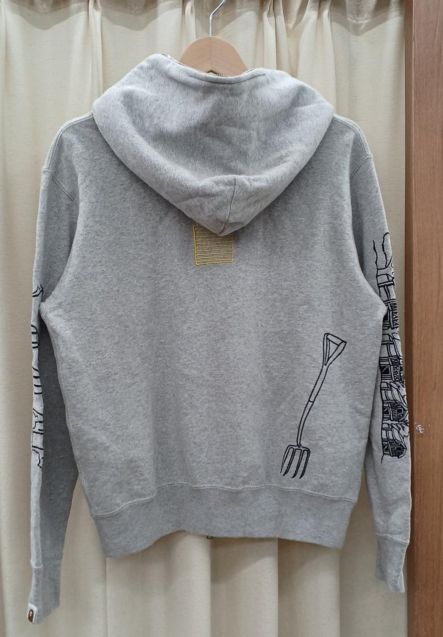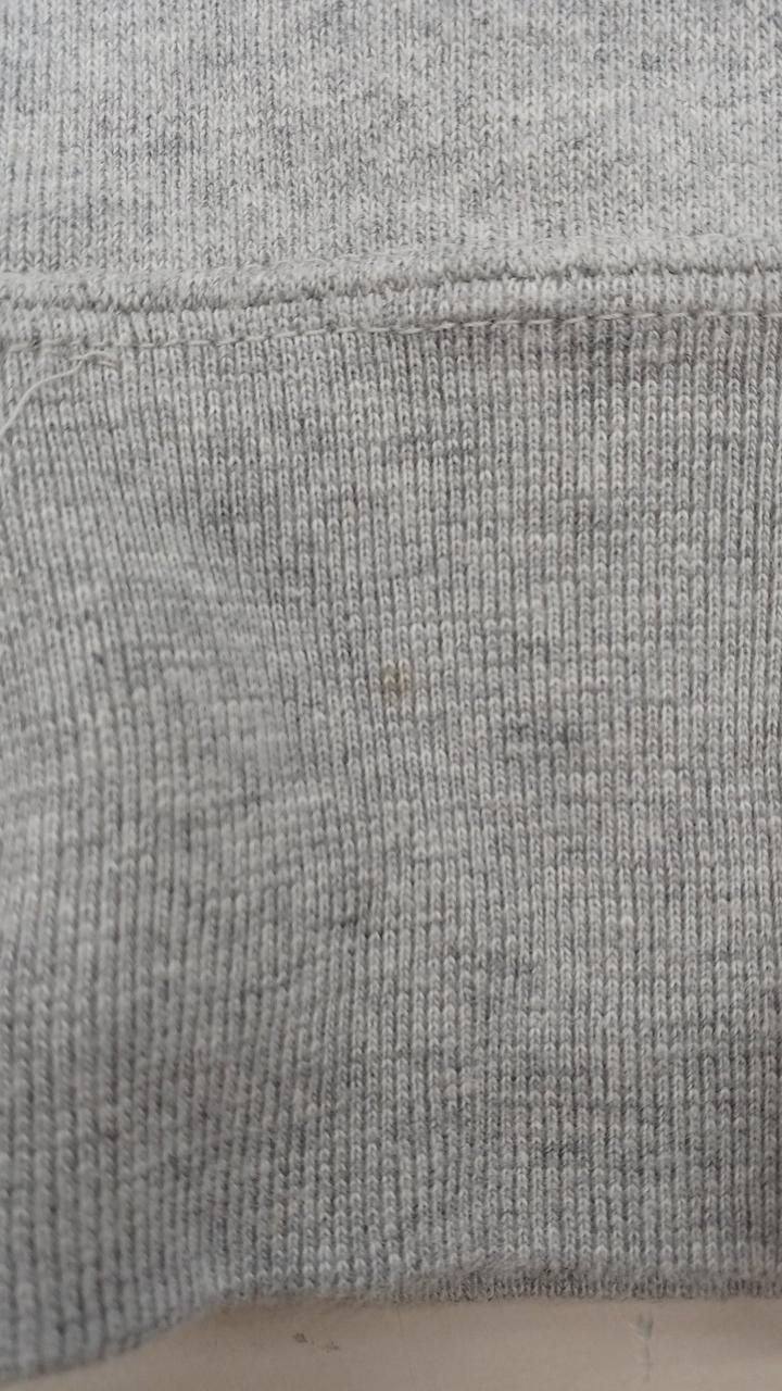 通常の使用感はあります。特別目立つわけではありませんが、右ポケット部分と左袖部分に薄いシミがあります。 |
