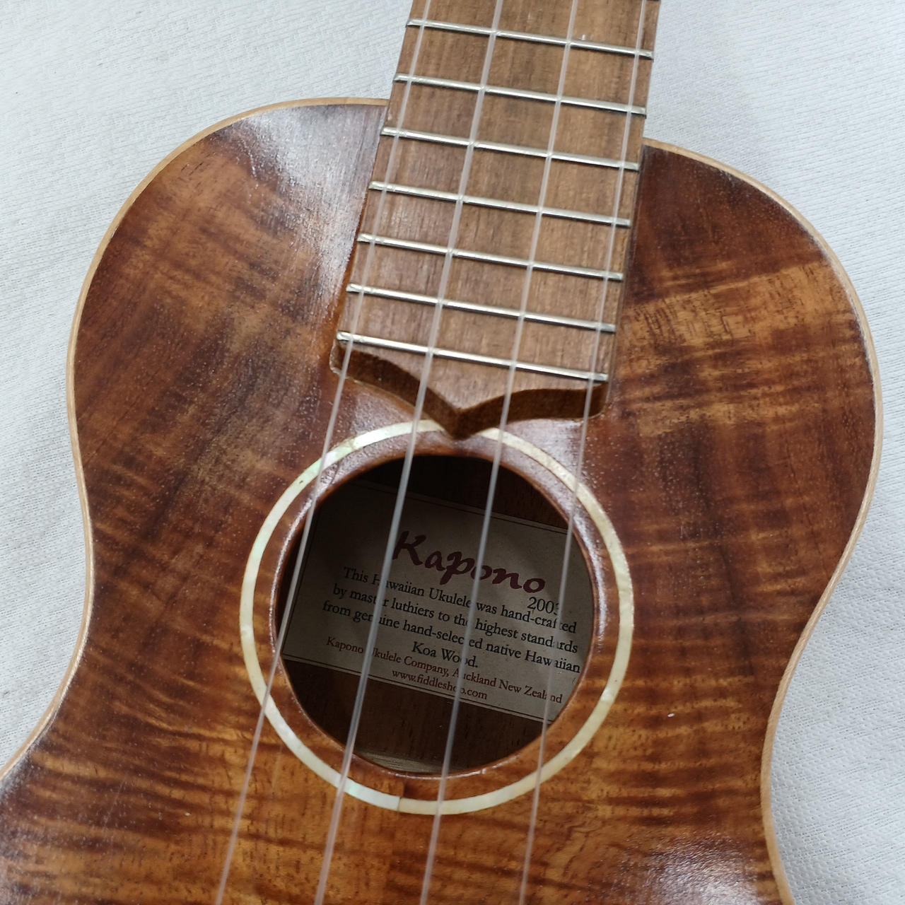 ニュージーランドのウクレレメーカーのようです ハワイアンコア材と記載あり |