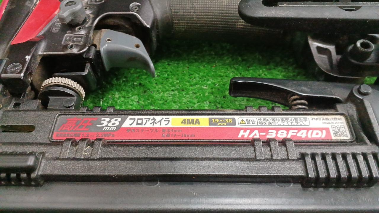 主に木質フロア材の施工に使用する高圧ステープル用エアネイラで、19〜38mmの4MAステープルに対応しています