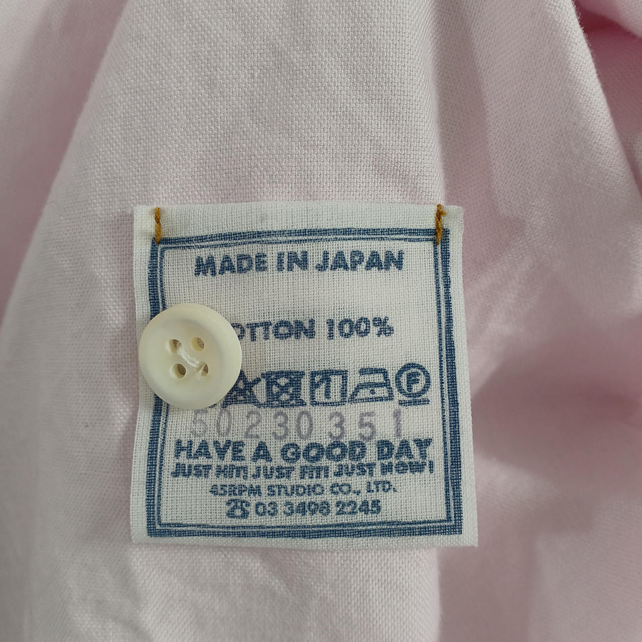 45RPMスーピマオックスの908ローファーラインプルシャツ M相当・ピンク |