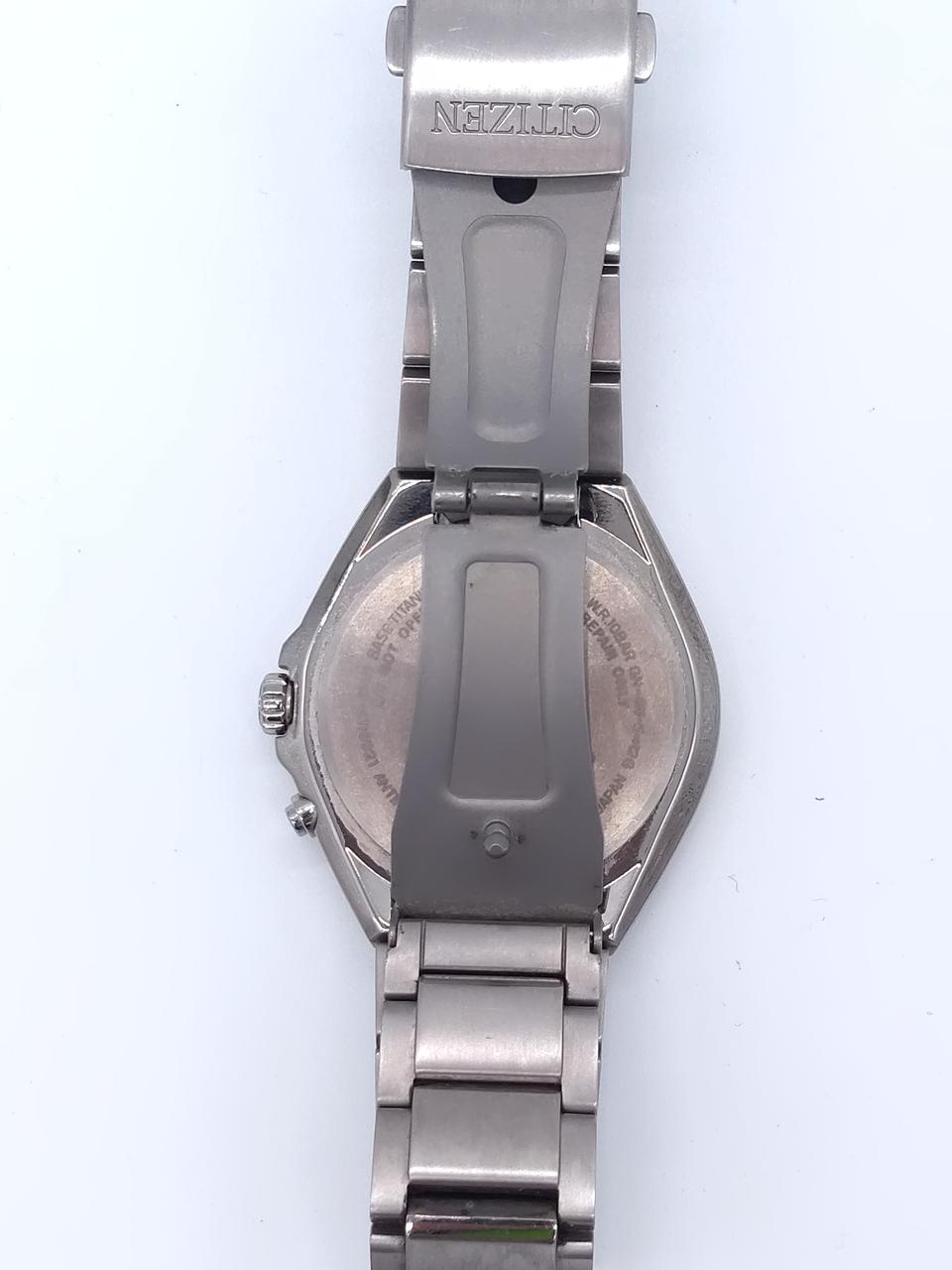 エコドライブで駆動しています、腕周り:16.5cm予備コマありません、チタミウム製、取扱説明書なし、箱なし・現品のみです。 |
