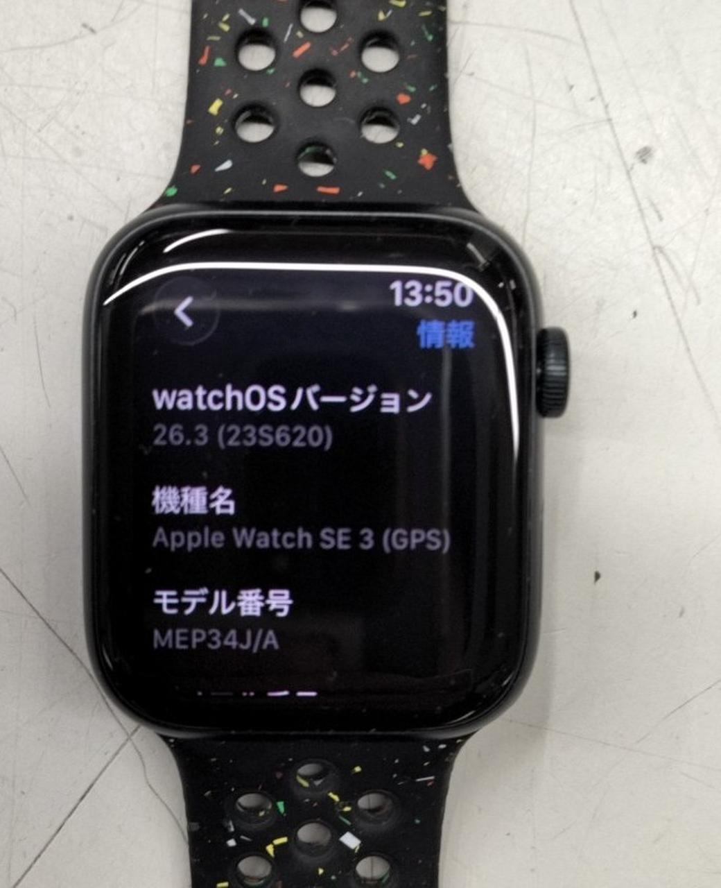 SE3世代 44mmRetina 64GB CPU:デュアルコアS10 SiP 50m耐水/各種センサー/転倒検出/ watchOS:26.3 |