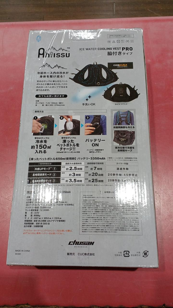 バッテリー稼働で水を循環させて快適な冷感を生み出す水冷服です。 |