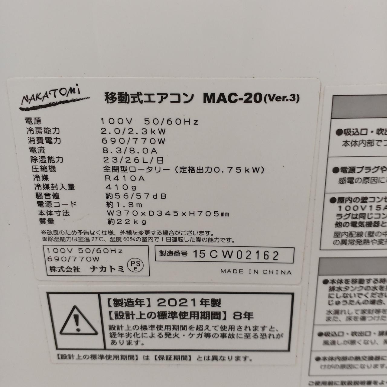 冷房能力:2.0/2.3KW |