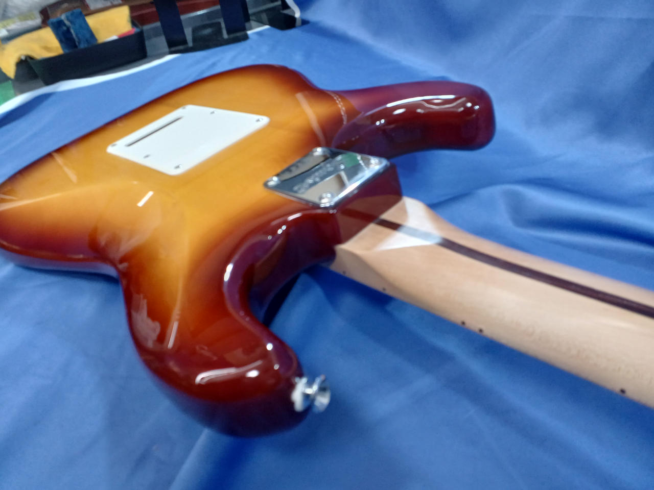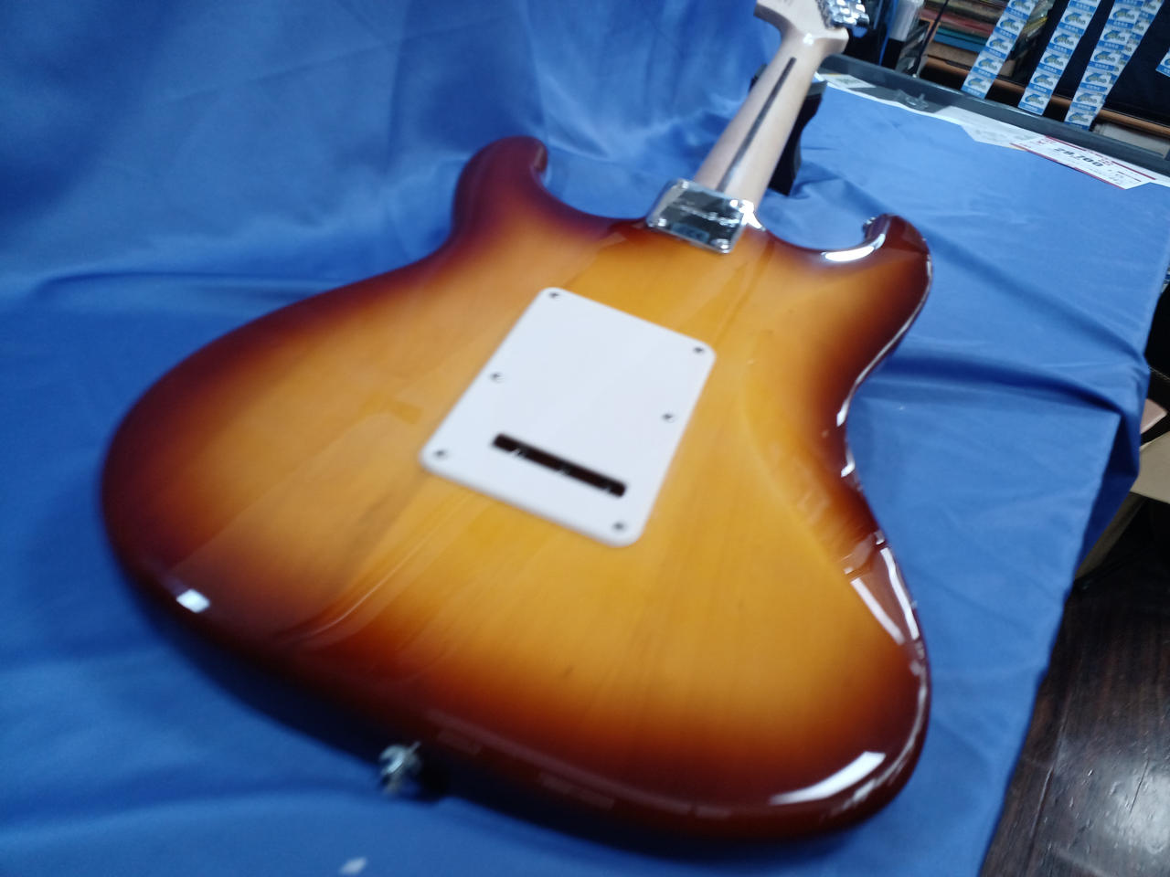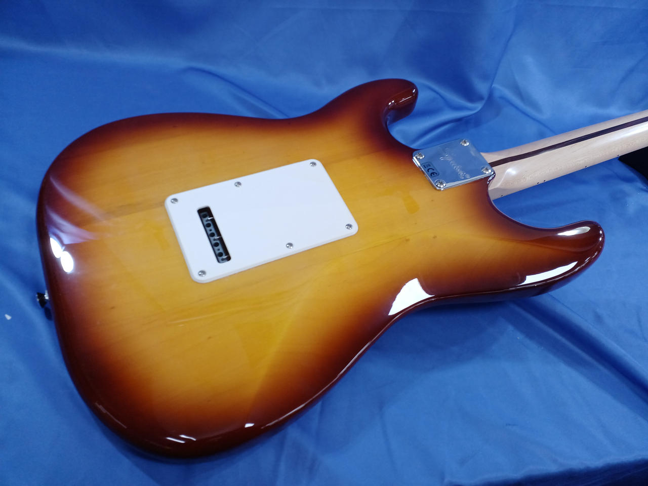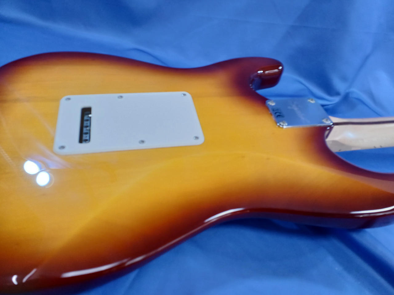 ラージヘッドにHSS仕様、フレイムメイプル貼りのちょっとイかしたSquier |