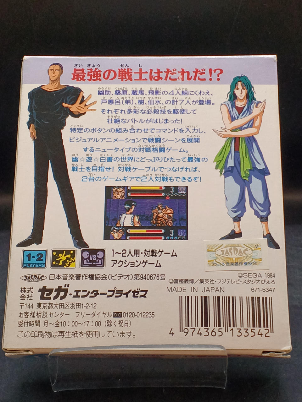 週刊少年ジャンプで人気を博した漫画「幽遊白書」のゲームギア用タイトル |