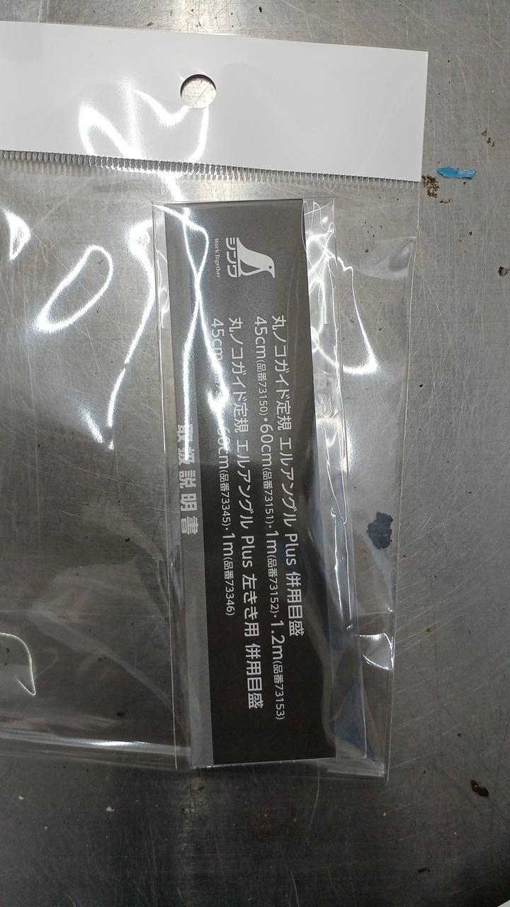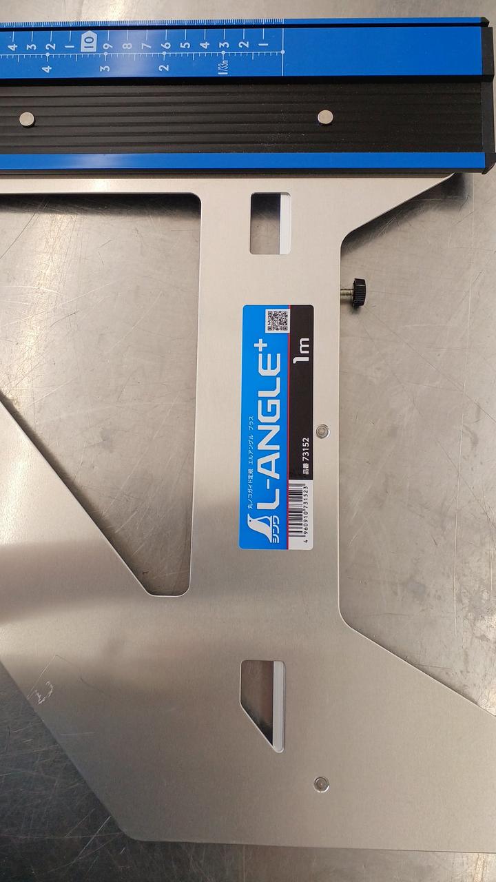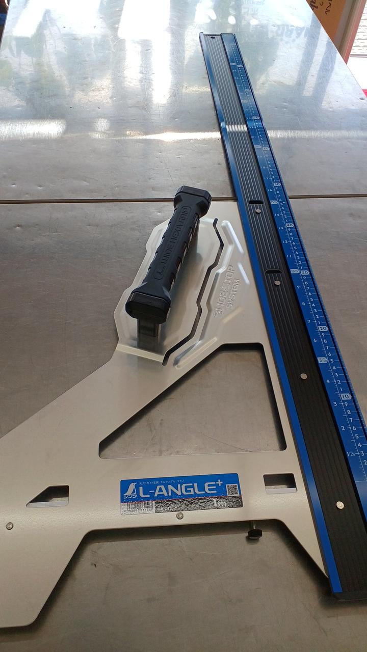 材料に当てて電気丸ノコを沿わせるだけで、直角に切断できます。 |