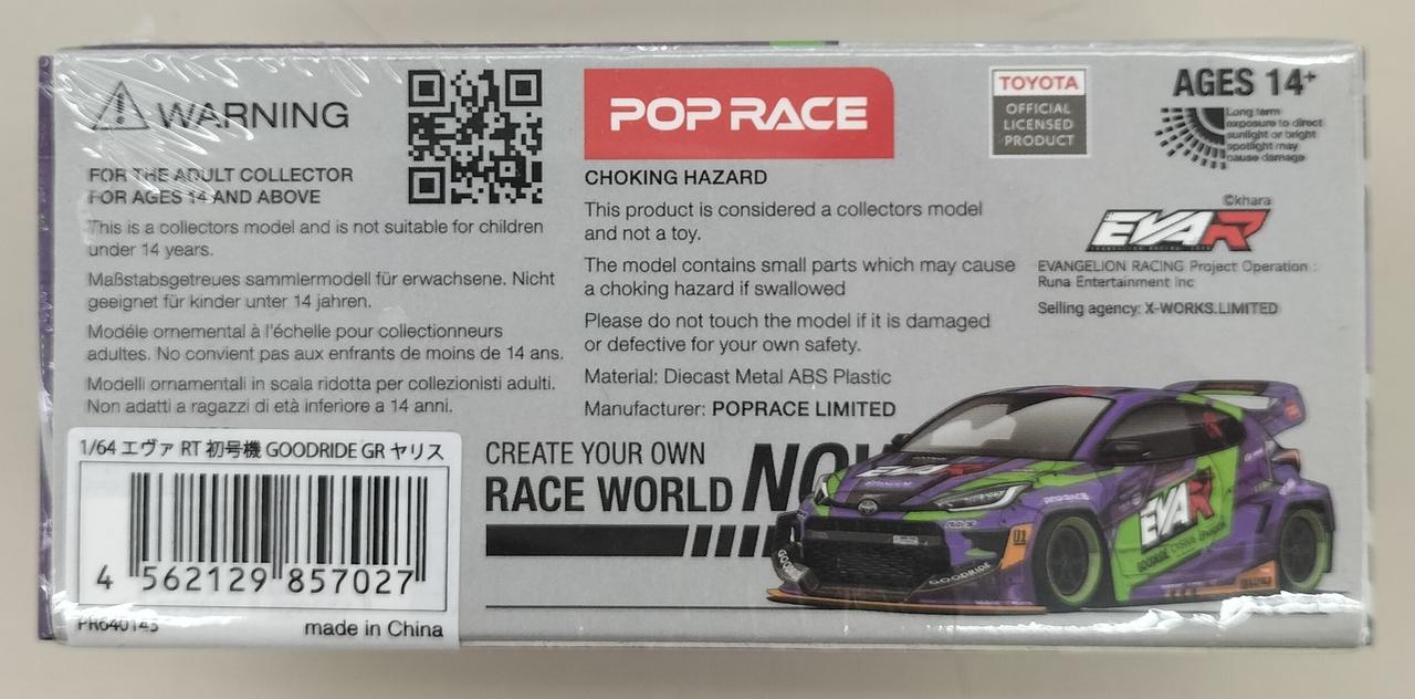「トヨタGRヤリス」をベースに、エヴァンゲリオン初号機をイメージしたカラーリングを施した参戦マシン「エヴァRT初号機 GOODRIDE GRヤリス」が、4月のFORMULA DRIFT JAPAN 2024開幕戦で初登場。POPRACEはこの参戦車両を1/64スケールで極限まで再現しました。エヴァンゲリオンの特徴的なカラーリングとドリフト仕様のディテールが忠実に再現されており、ファンにはたまらない一品です。 |