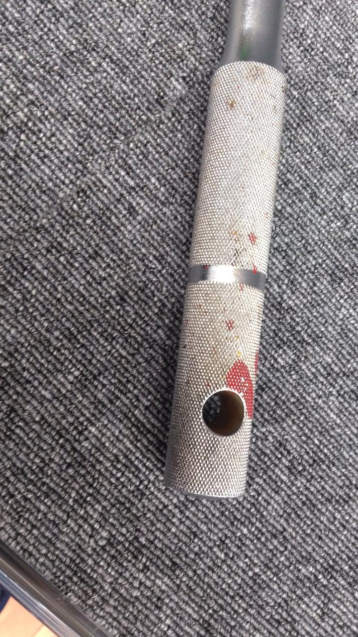 周辺の障害物を避けるための柄部の曲り角度を45°に設計キズ汚れが多いです