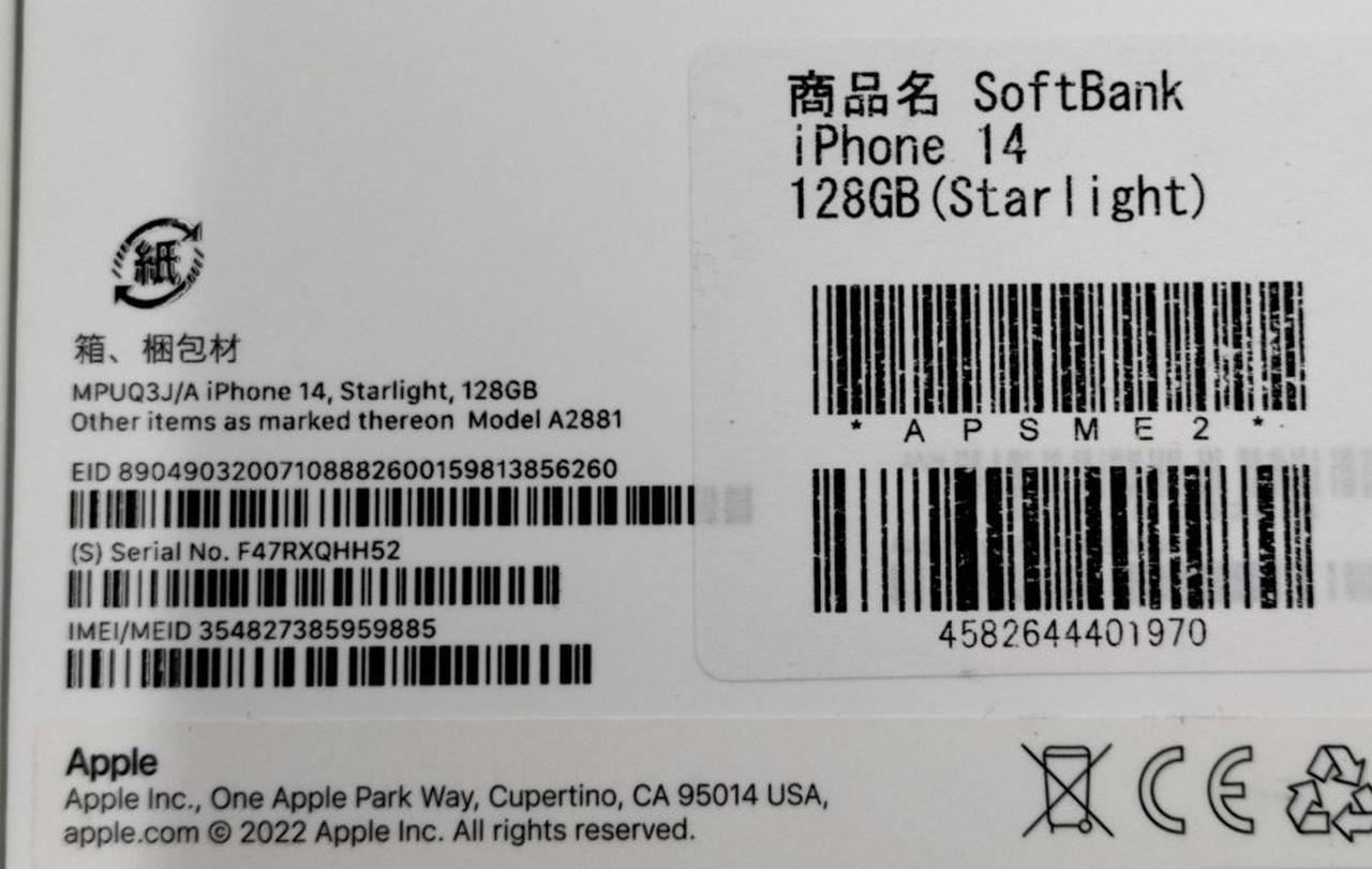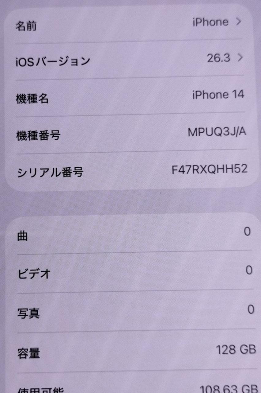 6.1インチTrueToneSuperRetinaXDR 128GB CPU:Apple A16 ApplePay/急速充電/Qi/顔認証 nano-SIM iOS:26.3 |