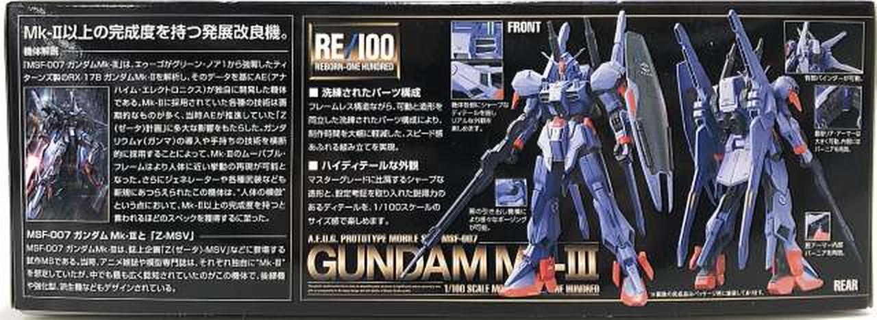 話題の新カテゴリーRE/100第2弾としてZ-MSVより、ガンダムMk-IIIがついに1/100スケールでキット化。ハイディテール、洗練されたパーツ構成で、高い完成度と作りやすさの両立を再現。 |