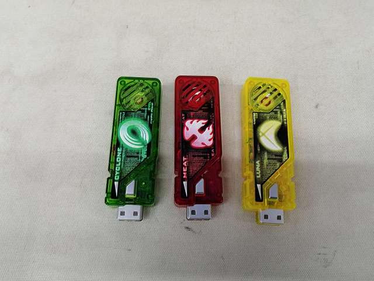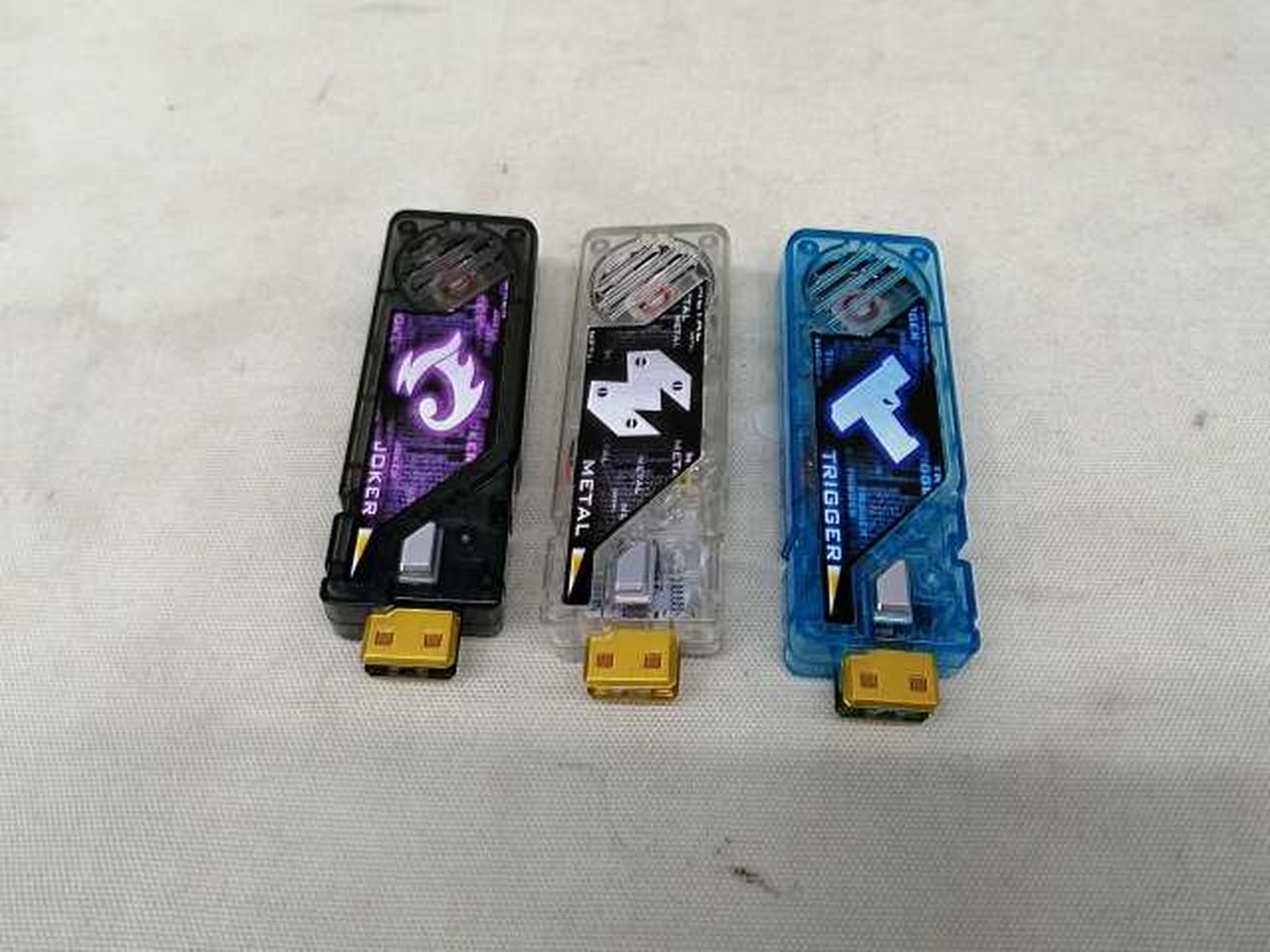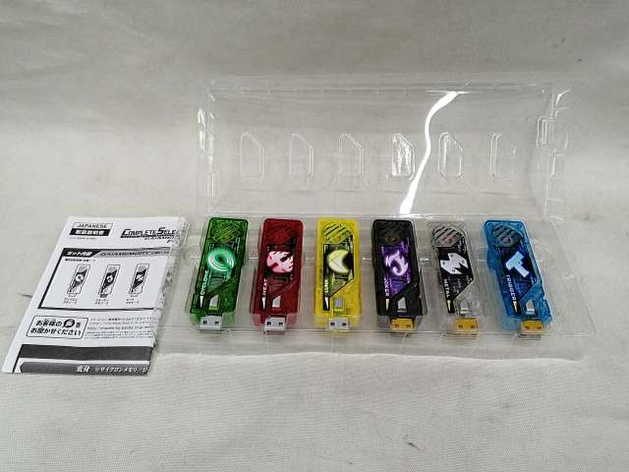 風都探偵の声優の音声を収録したガイアメモリセットです。別売りの「CSMダブルドライバーver.1.5」に差し込んで変身遊びができます。 |