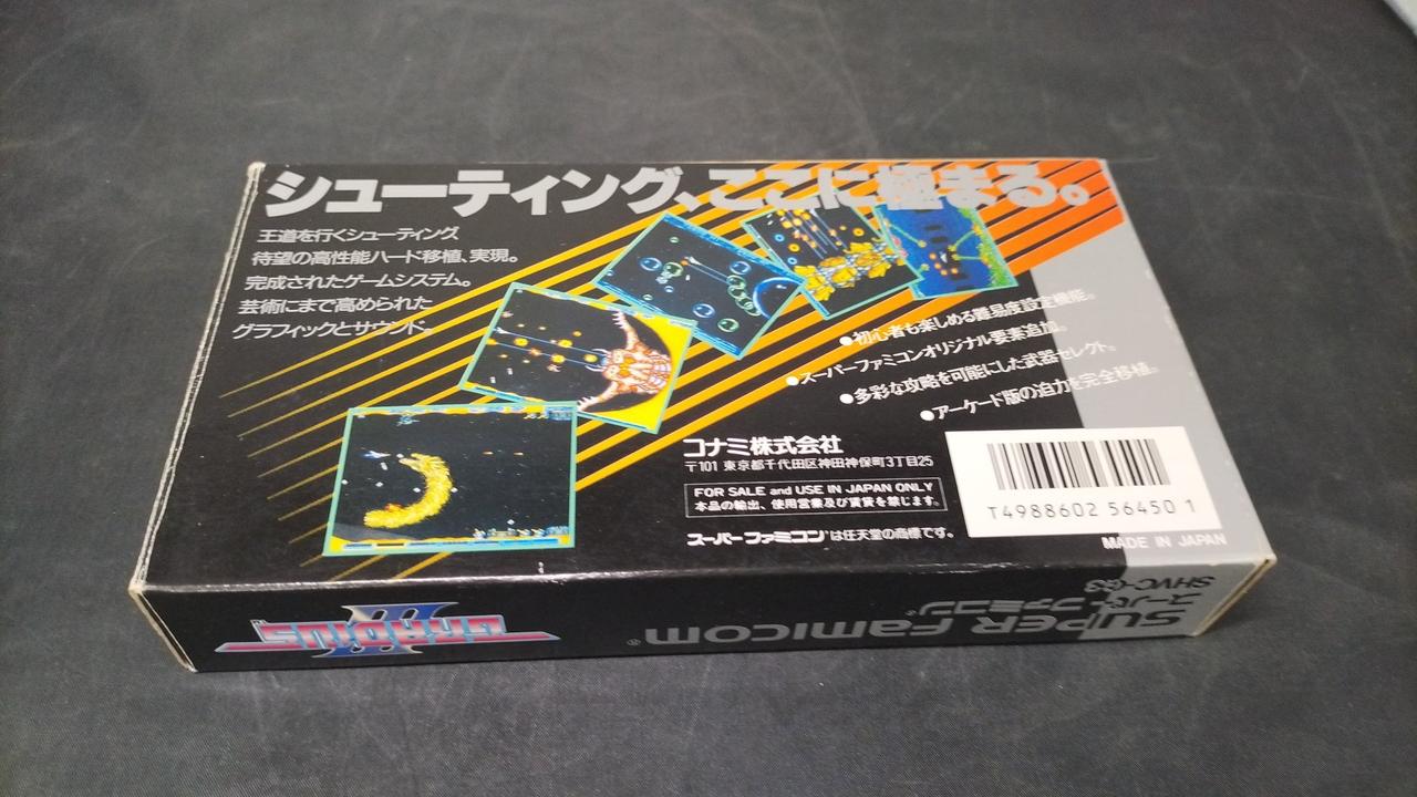 コナミ初のSFC用ソフトであると同時にスーパーファミコン初のシューティングゲーム! |