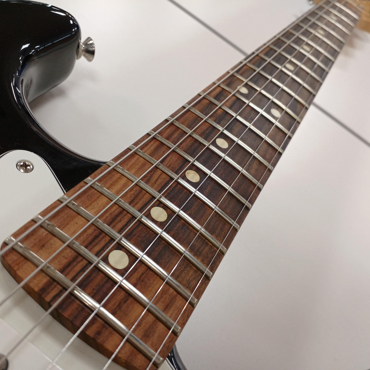 ネック:ほぼストレート、トラスロッド:左右余裕あり、弦高(6弦約2.0㎜/1弦約1.5㎜) |