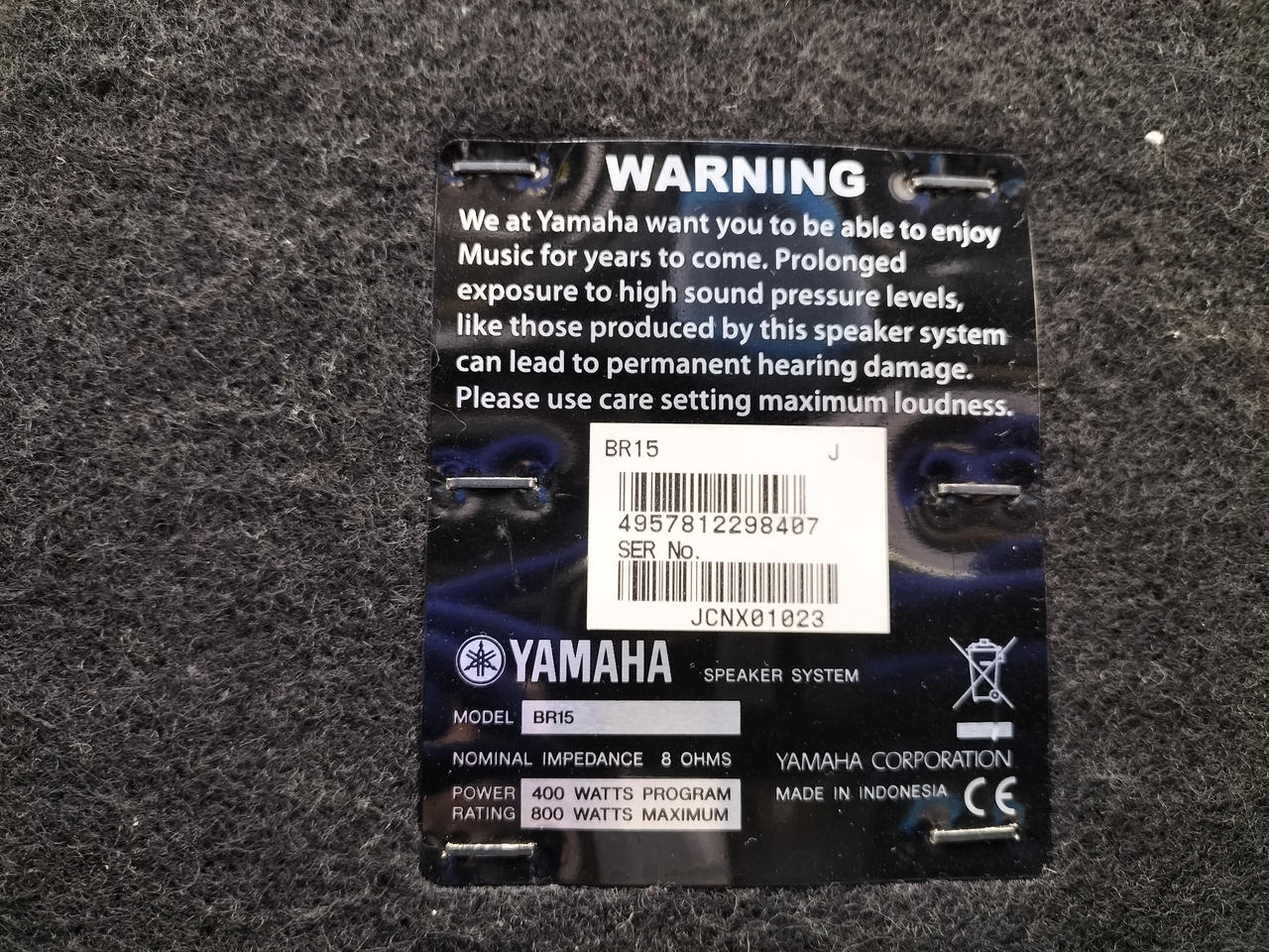 タイプ:2WAYフルレンジ、許容入力:400W(プログラム)、インピーダンス:8OHMS |