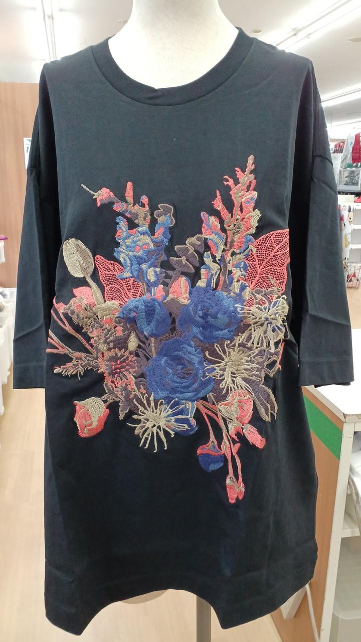 フラワー刺繍が可愛いユニセックスなオーバーTシャツになっています