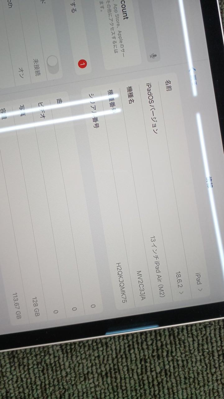 第6世代 iOS:18.6.2 画面サイズ:13インチ 記憶容量:128GB Wi-Fiモデル |