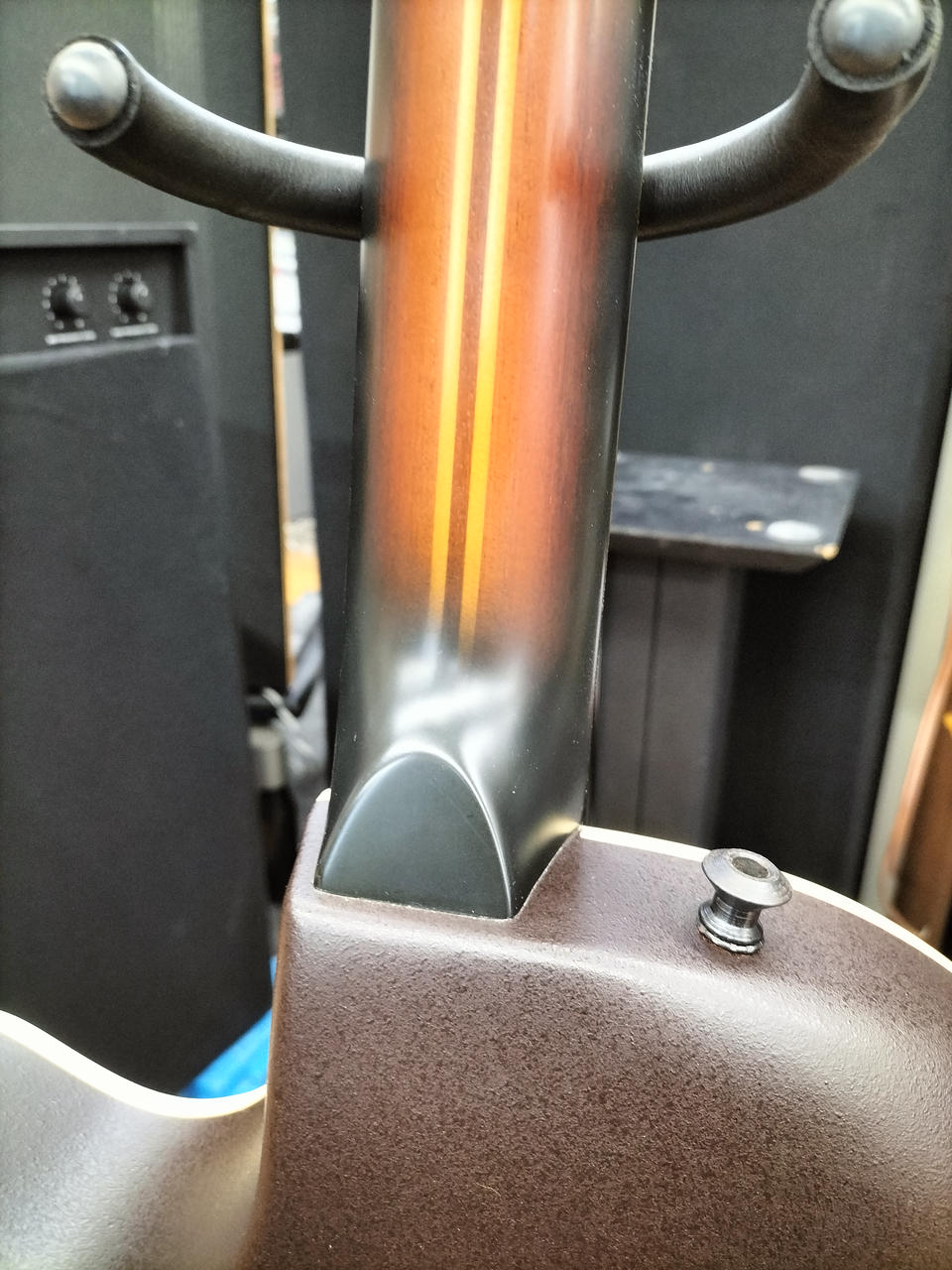 ネックは、握り込み易いVシェイプとなりUSA製ならではのプレイアビリティ。 |