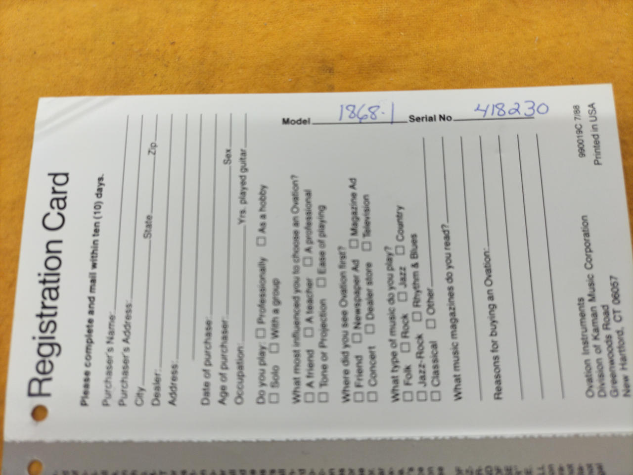現在では希少となったUSA製造となります。プリアンプのOP-24から得られる説明不要のOvationサウンドが心地良いです! |