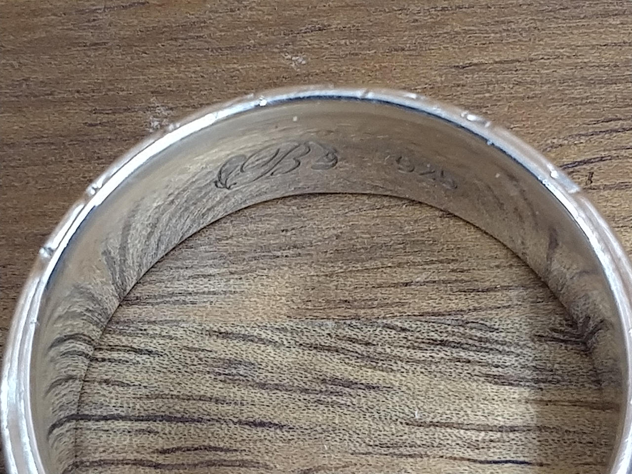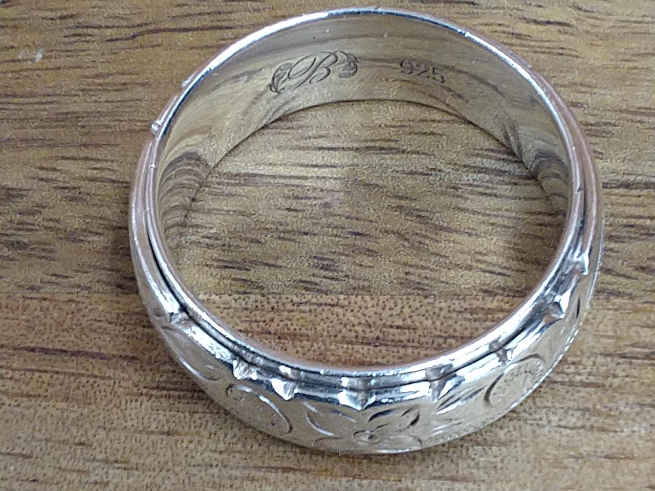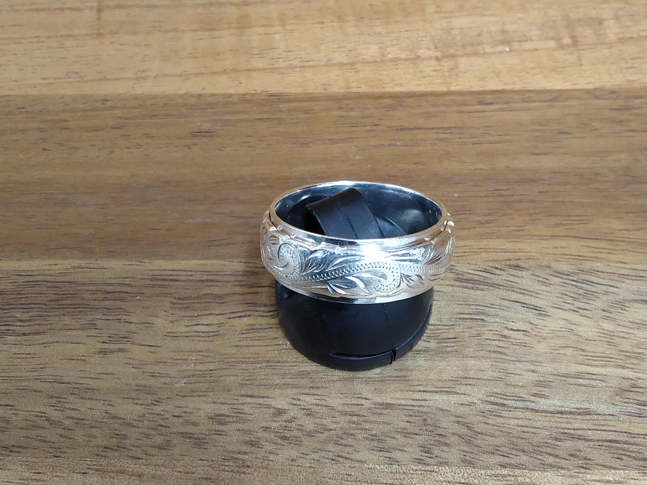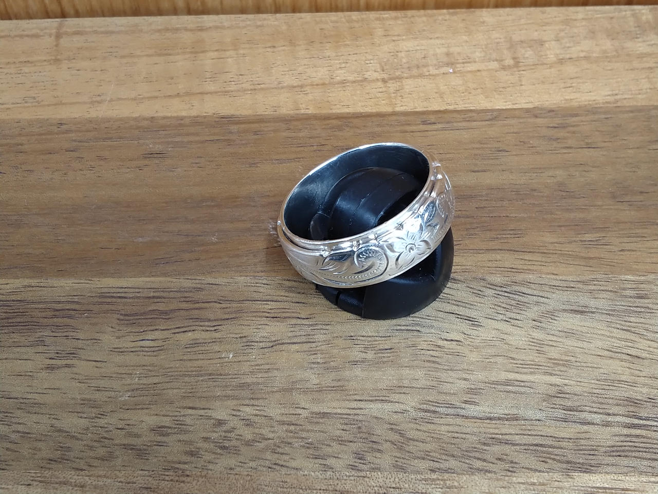 スクロール柄とプルメリア刻印のハワイアンリングです