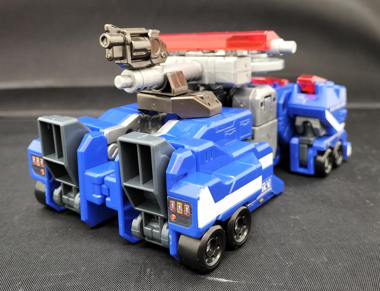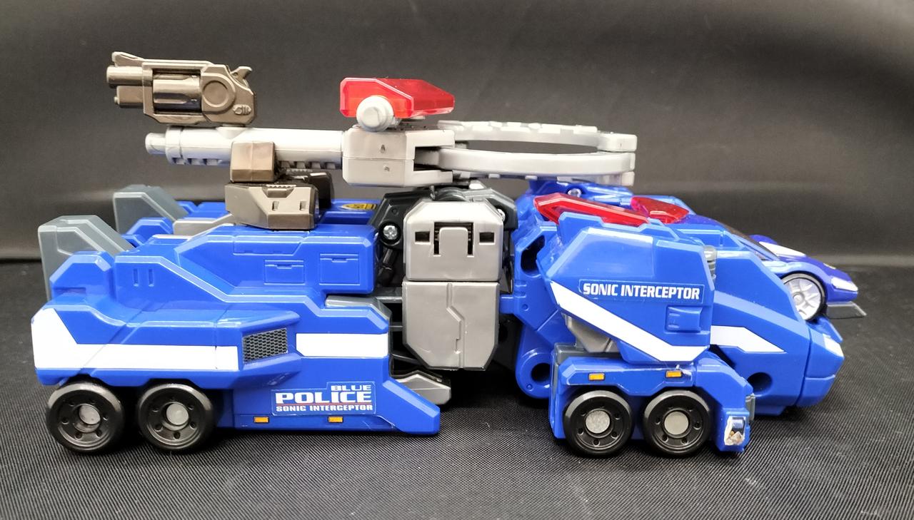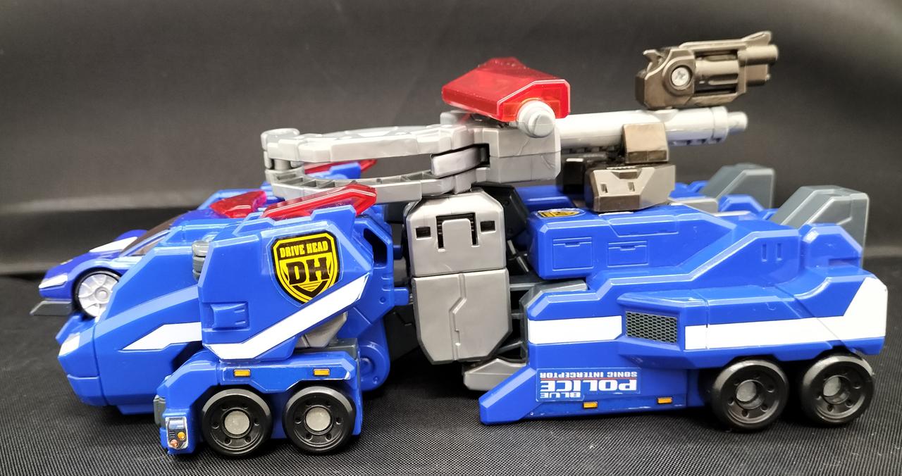 ドライブヘッド 01 ソニックインターセプター ゴーレスキュー!主人公「車田ゴウ」が操縦する、機動救急警察ハイパーレスキューが開発した警察機能に特化したドライブヘッド。軽量化され、機動性能が高く、カーフォームとウォーカービークルフォームの変形が可能。 |