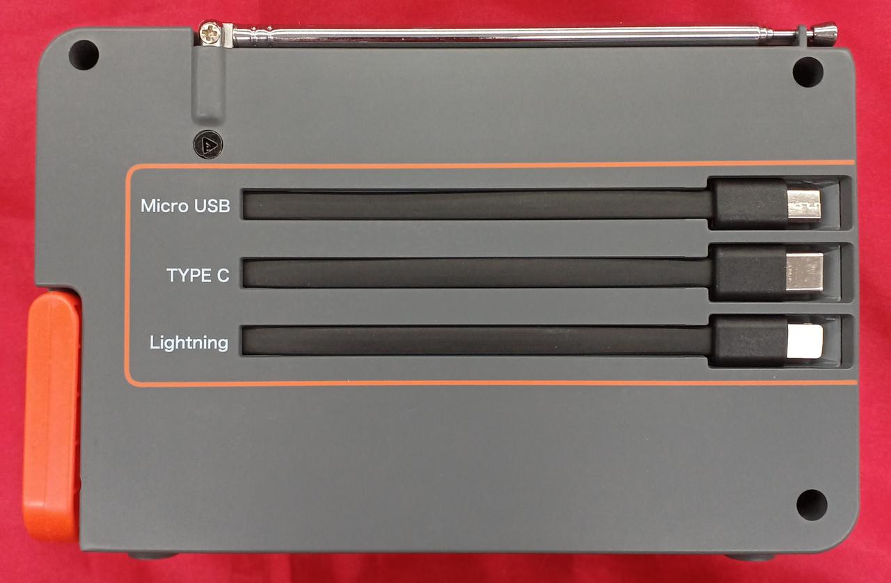 メガパワーステーションにワイドFMラジオ+USBケーブル3本内蔵+周波数デジタル表示対応 |