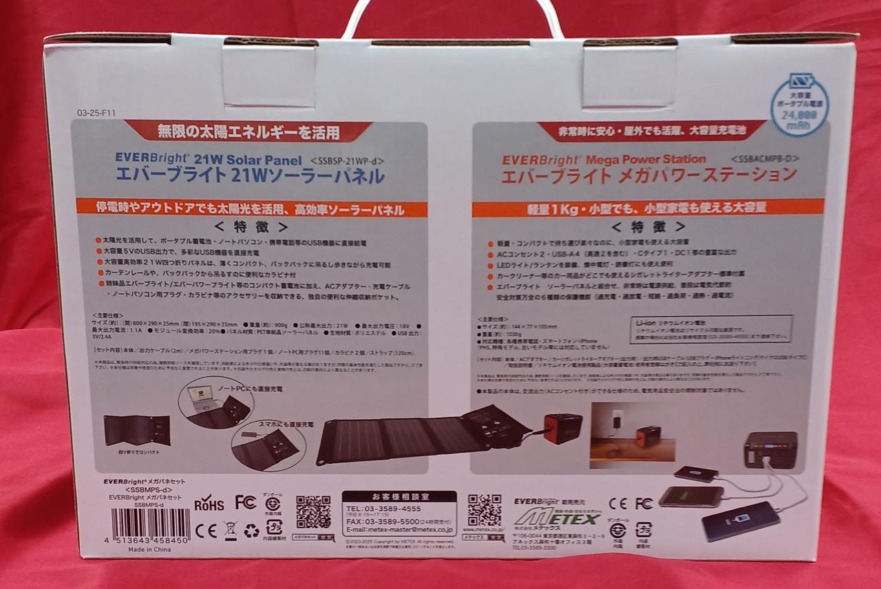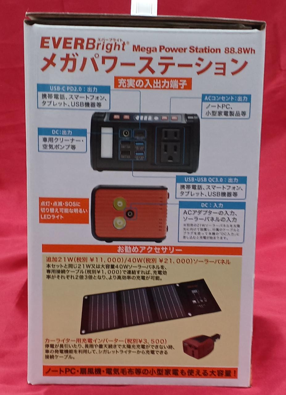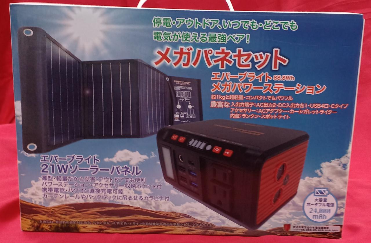 メガパワーステーションと21Wソーラーパネル一体型BOX |