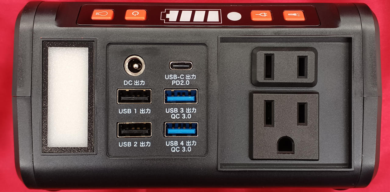 入 力:DC19V/1.5A(ACアダプター)、 DC15-24V/1.2A(ソーラーパネル) |