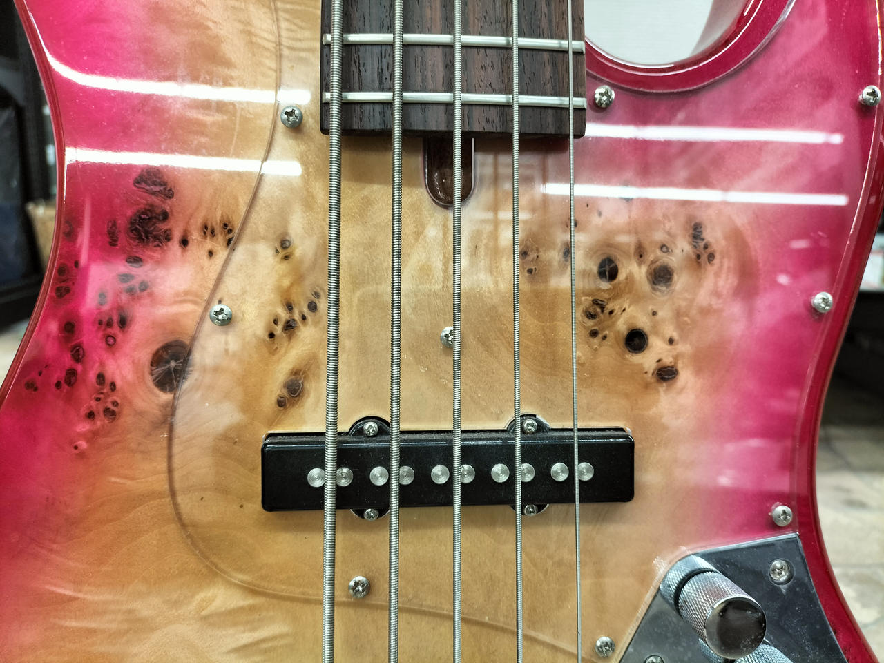トップ バールポプラ、バックにはマホガニー ネックメイプル ローズウッド指板 |
