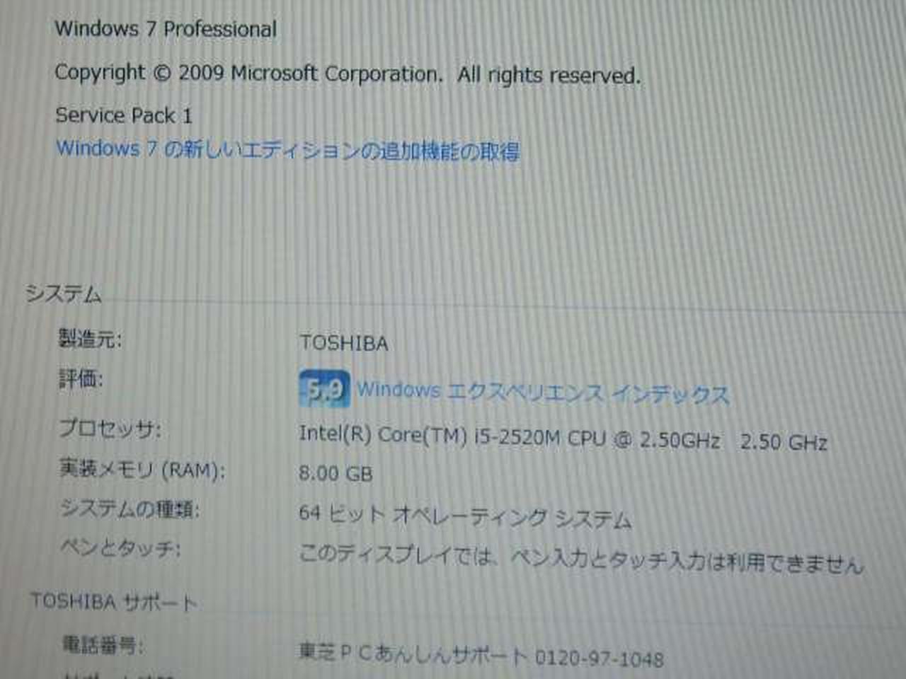型番:dynabook Satellite B551/C