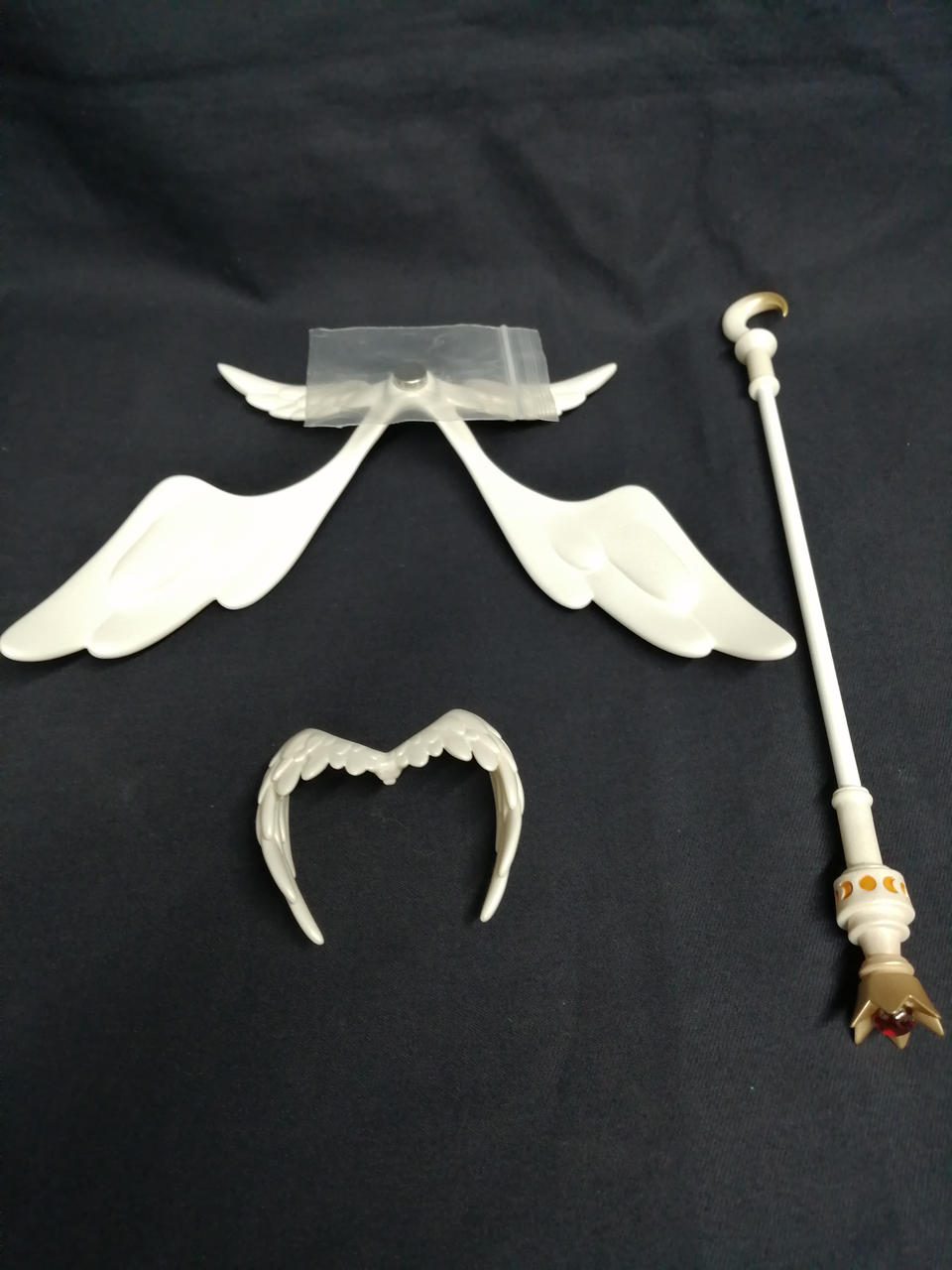 説明書、ウィッグ、スカート、イラストカードなど一式、練り消し、交換用耳パーツ、猫耳ヘッドドレス、アクリルスタンド、翼(マグネット装着式)、杖(短)、杖(翼付き) |
