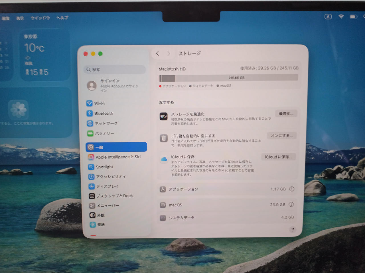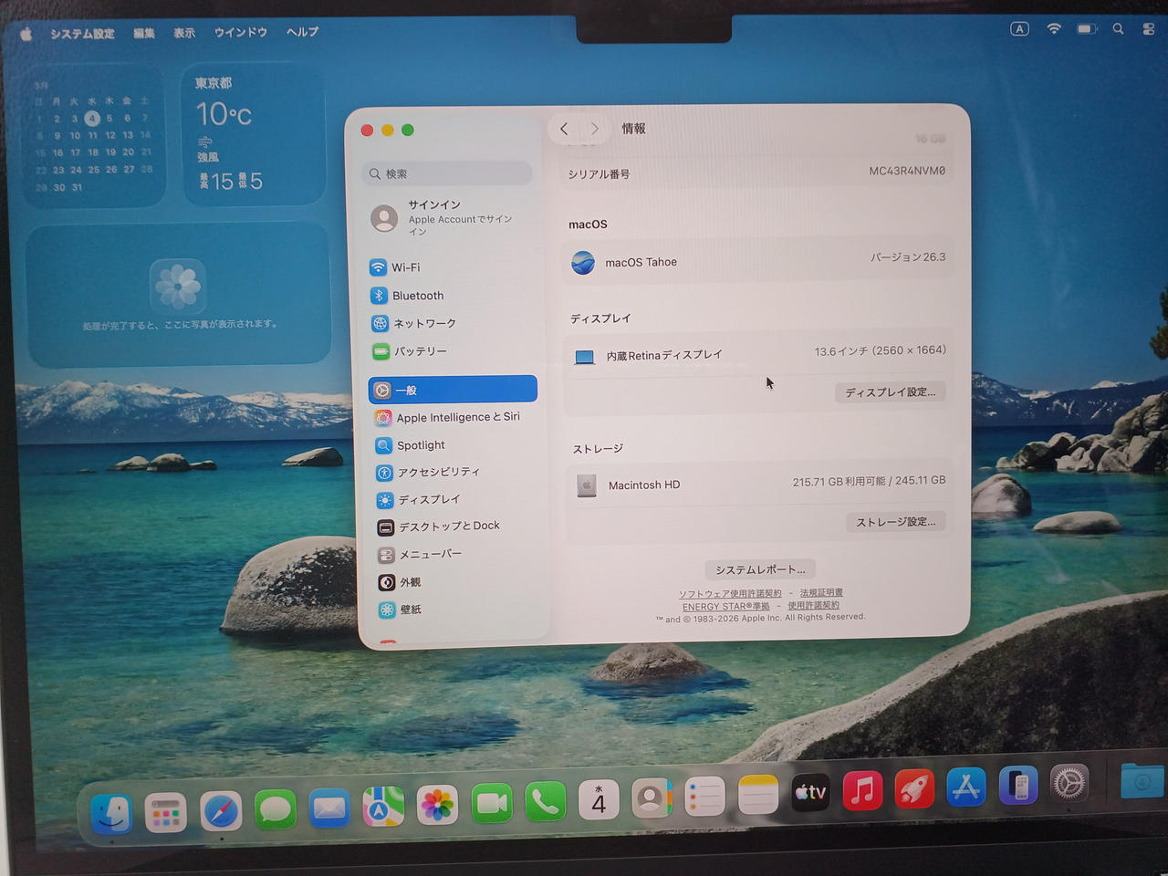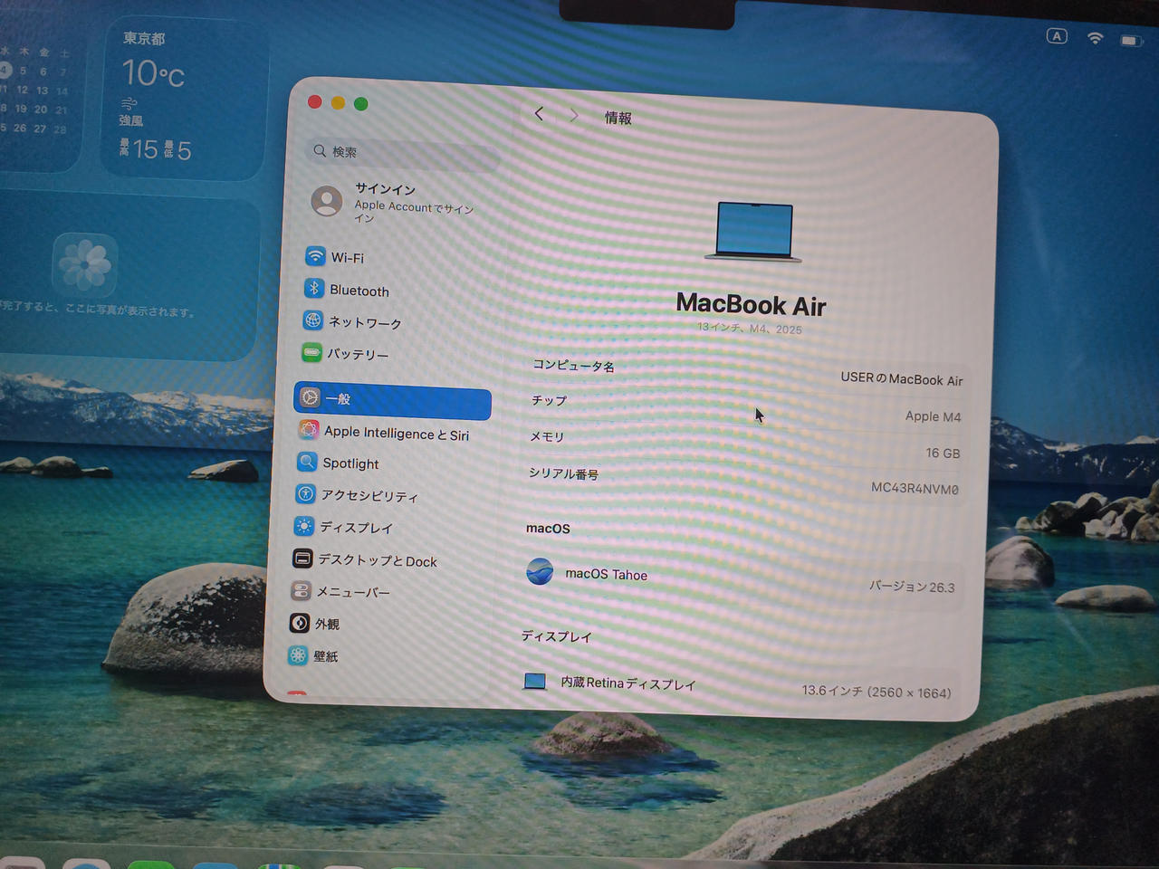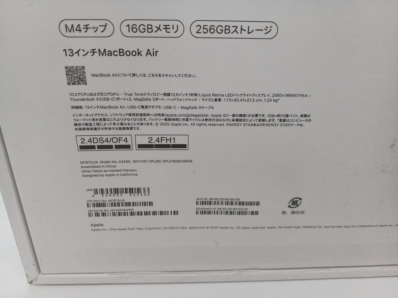 「M4」チップ、Liquid Retinaディスプレイの13.6型「MacBook Air」。ストレージは256GB、メモリーは16GB、生成AI「Apple Intelligence」に対応。 |
