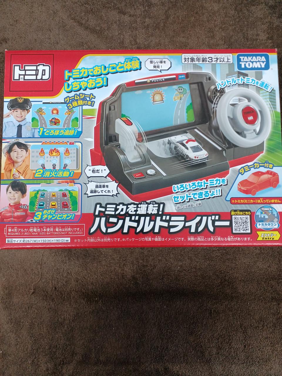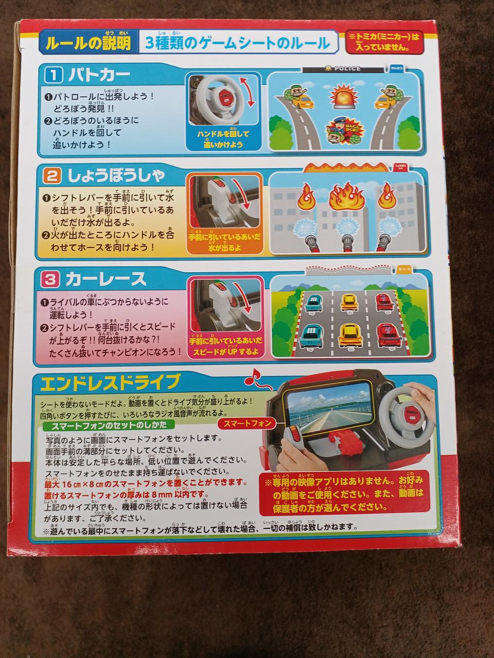 3種類のゲームシート(どろぼう追跡モード•消火活動モード•チャンピオンモード)で運転体験ができるハンドルトイです。