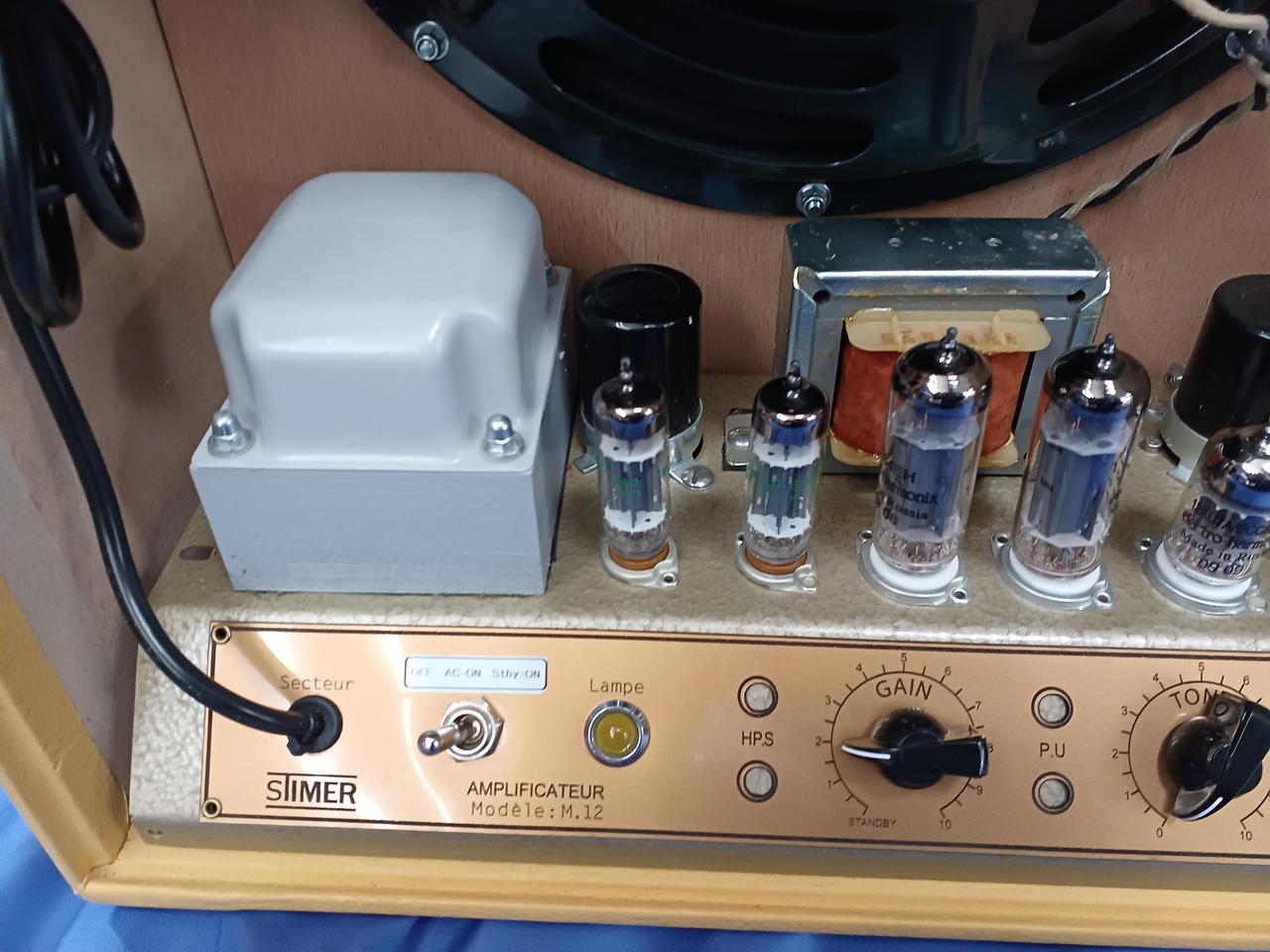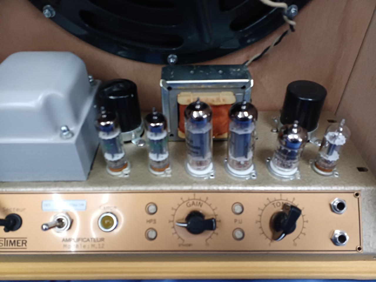 真空管交換されています。パワー管にEL84×2本で12W出力。ハンドメイドPtoPで配線されていて非常に味わいのある音がします!! |