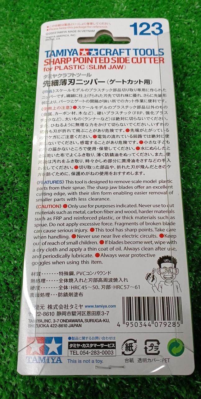 プラモデル製作に欠かせない工具、ニッパー。先細薄刃ニッパーは、薄刃ニッパー(ITEM74035)よりさらに先細形状に仕上げた繊細な刃先が特徴です。 |