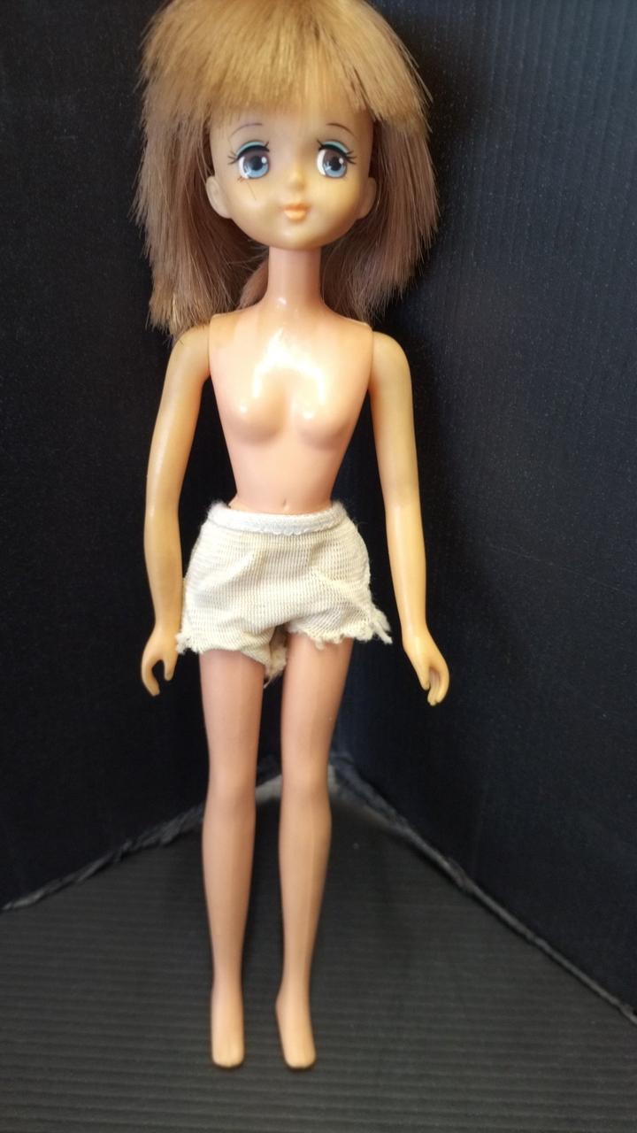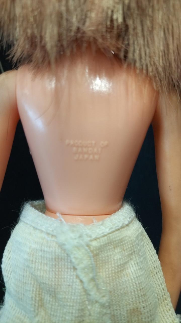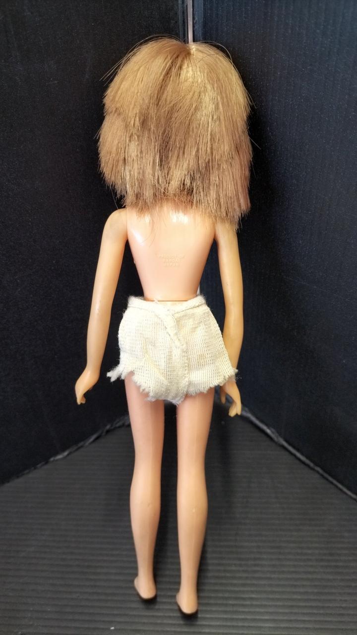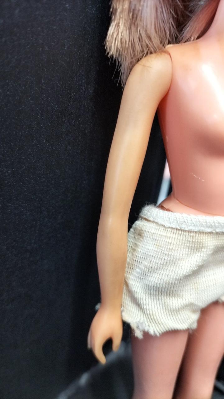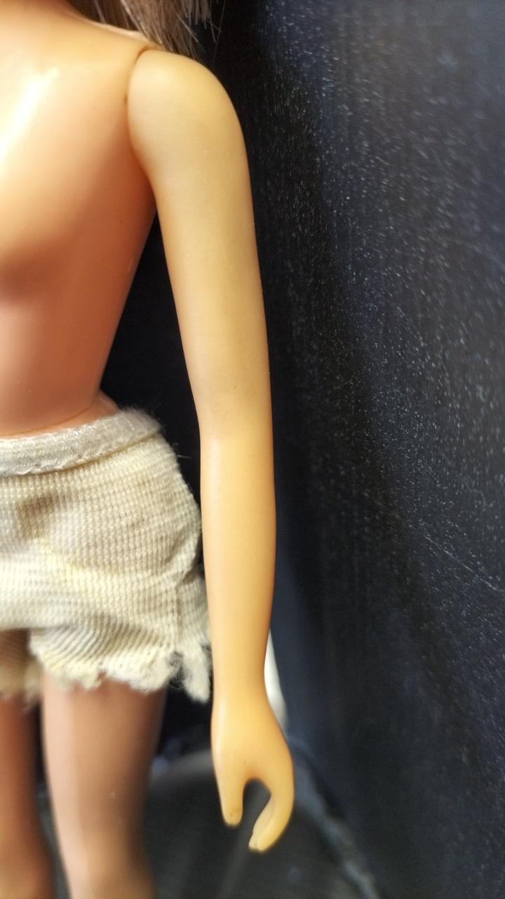 上半身首周り、タンクトップの形に変色あり。 |